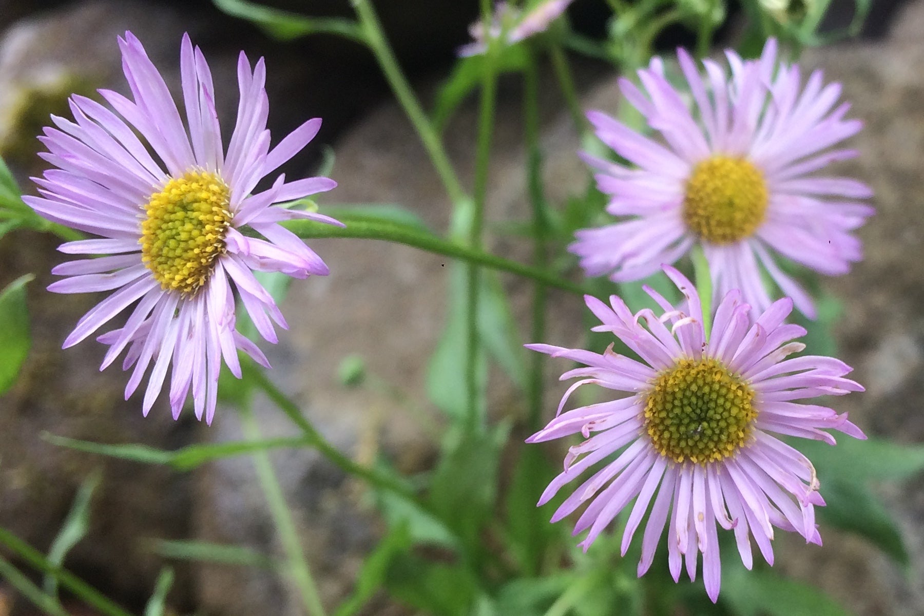 Erigeron is quite a large genus, with 390 species of annuals, biennials and perennials, not including all of the cultivars on the market too. The most widely used common name, fleabane, is shared with related plants in several other genera. It is derived from the belief that the dried plants repelled fleas, whilst the name Erigeron is derived from the Greek (eri = early; geron = old man), a reference to the appearance of the white hairs of the fruit soon after flowering.