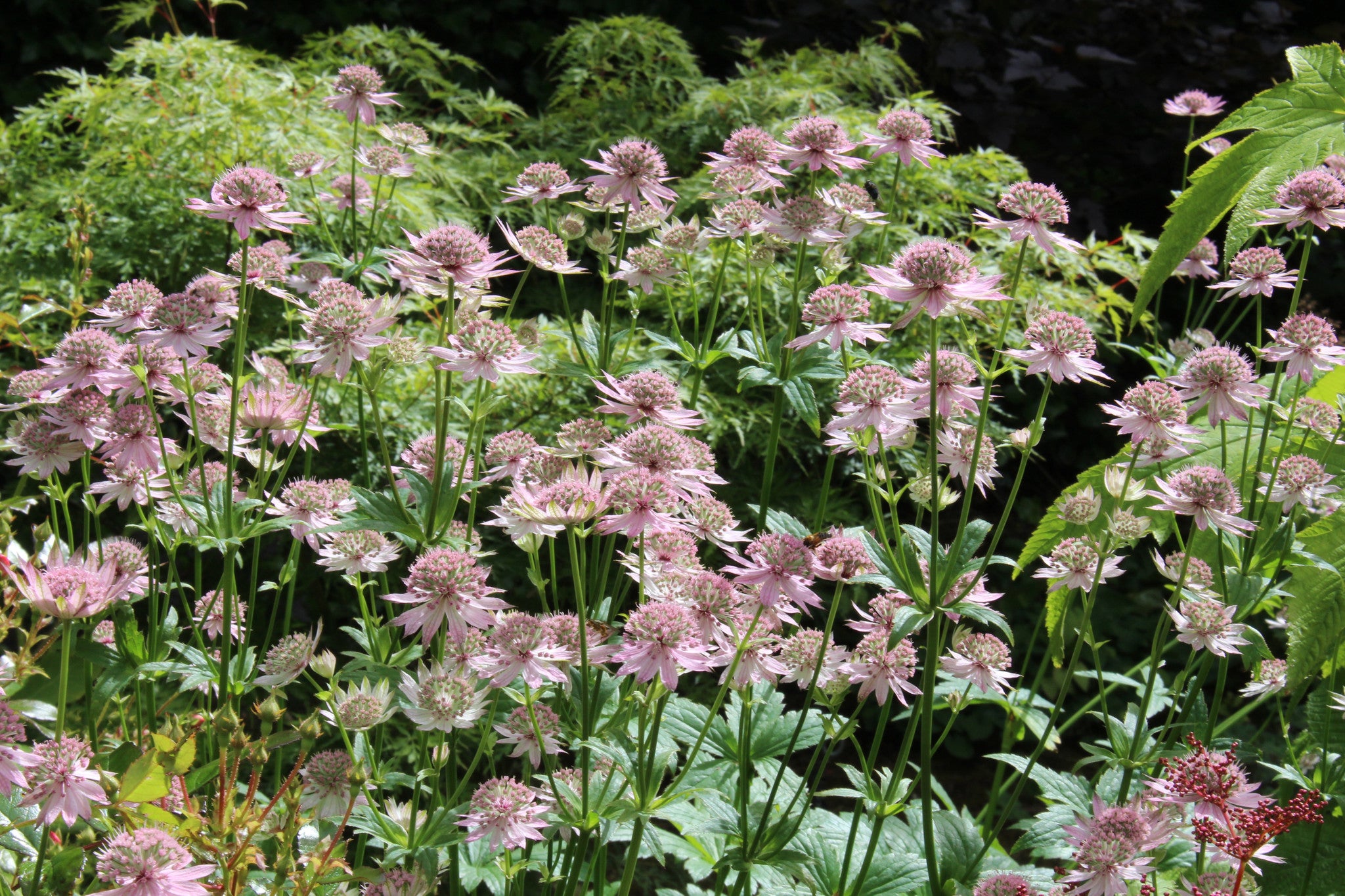 Astrantia is an upright herbaceous perennial that is probably our favorite plant in the garden at Ballyrobert. We find that nearly every Astrantia cultivar grows well in nearly every soil and situation; from shade to sun, from dry to wet, from clay to sand! They look great in sun when buzzing with insects but they can also be used in some troublesome part-shade areas. When the flowers die back they dry out very quickly, go light brown, and stay upright - this gives wonderful structure if you decide not to cut them back. This makes a wonderful cut or dried flower, hence the prevalence in the industry.
