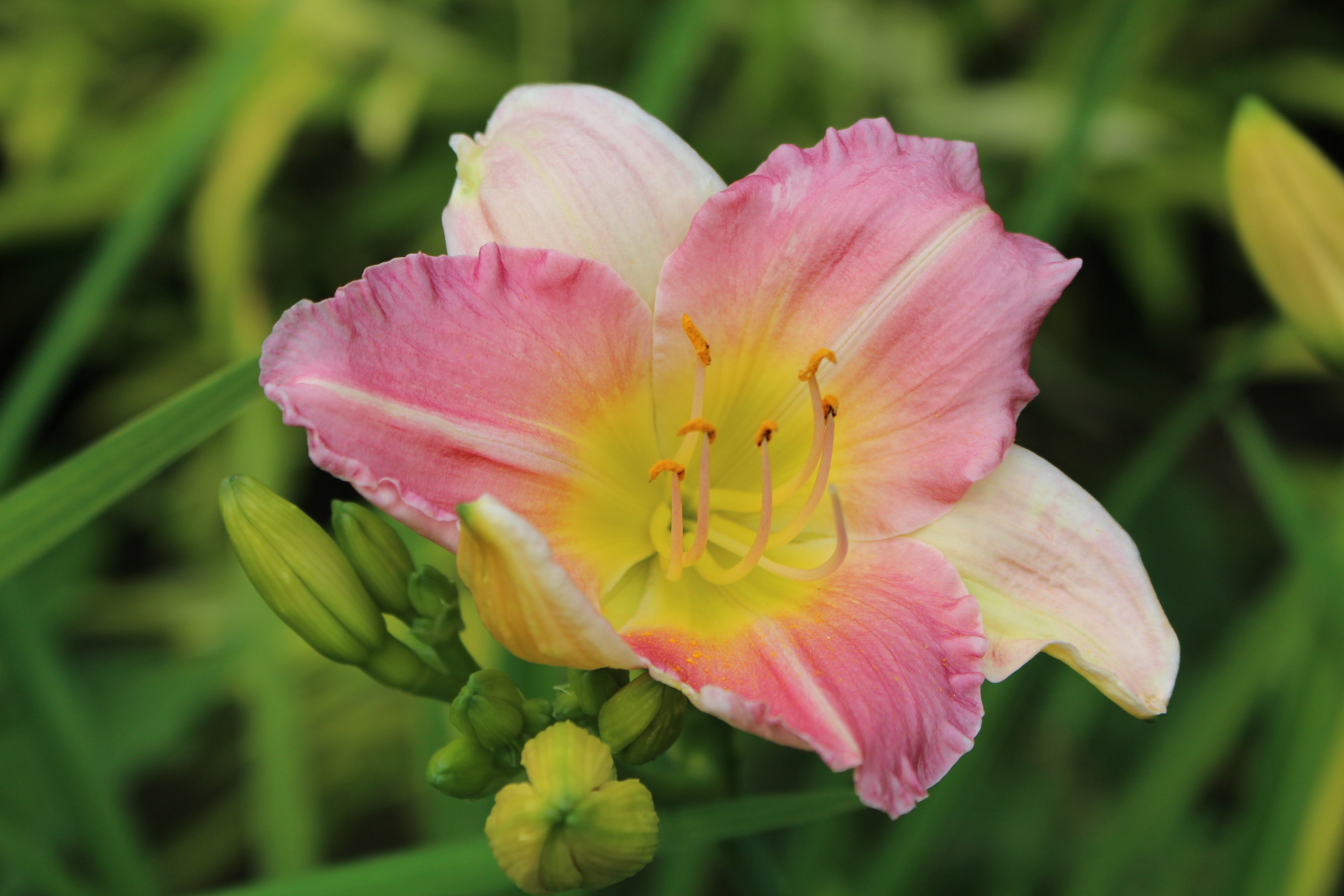 Hemerocallis 'Final Touch' is a 1991 Apps introduction with washed out white/pink flowers. Does well with us but I have heard reports otherwise. I think the wonderful flowers make this worth trying.