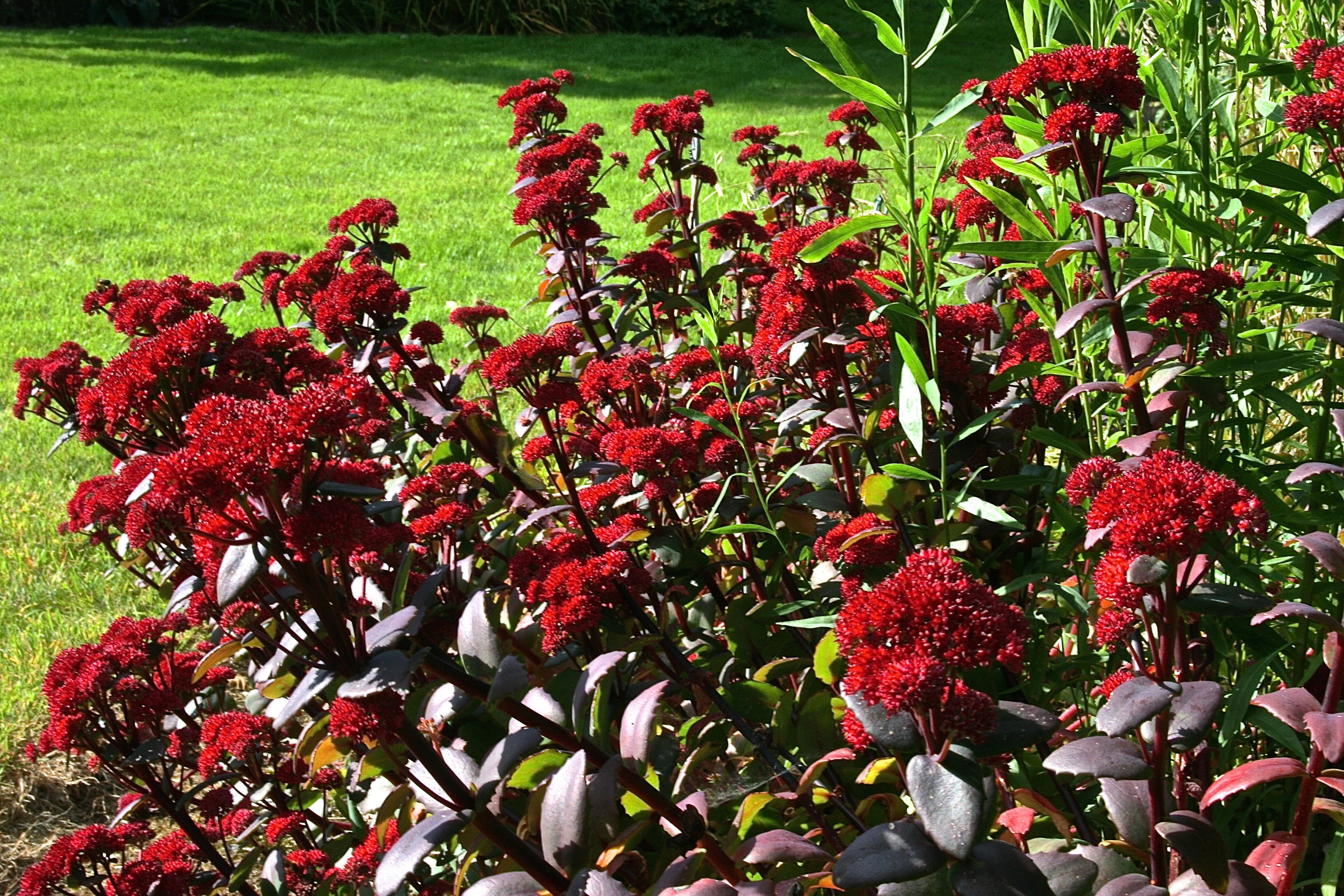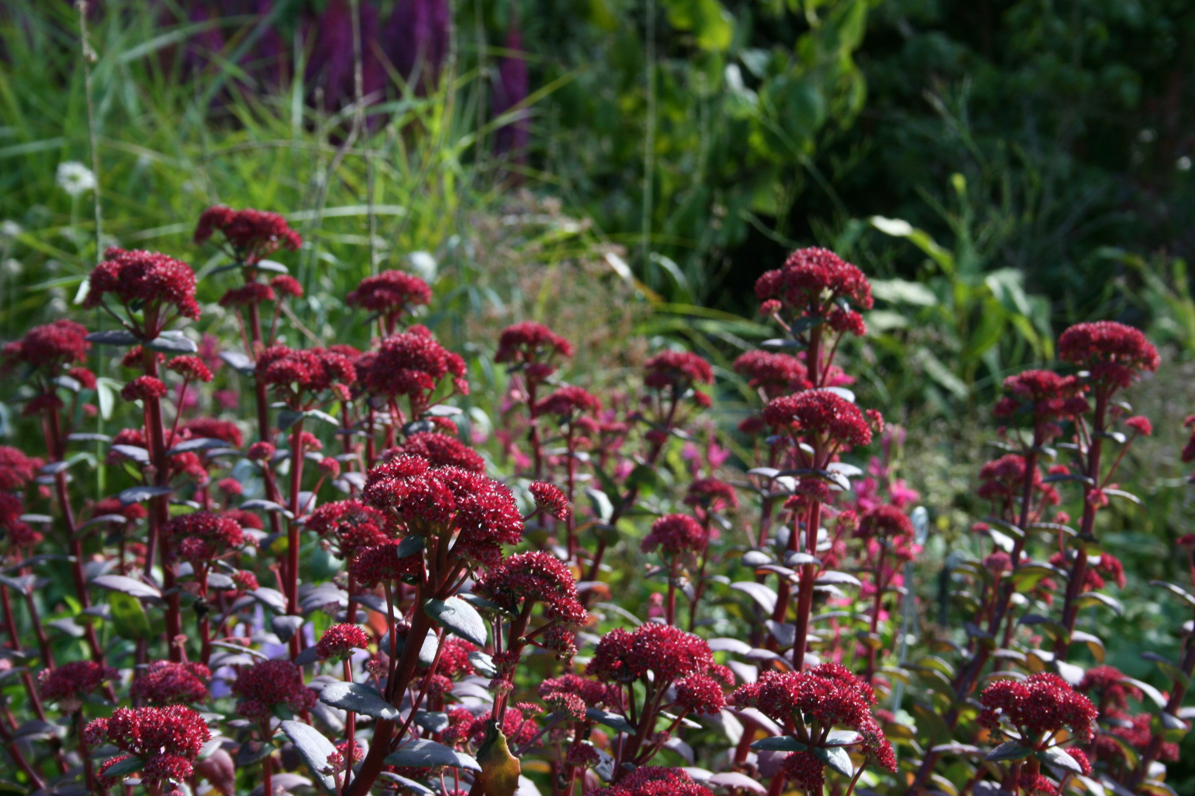 Try pairing tall Sedum with plants like Kniphofia, Hemerocallis, Salvia, and Euphorbia. The shorter Sedum look great filling in the ground beneath things like Paeonia, Rudbeckia, and Iris. I think they look best at the front of the border or by a path - they make a great sight the way they capture water droplets and people always stop to look!