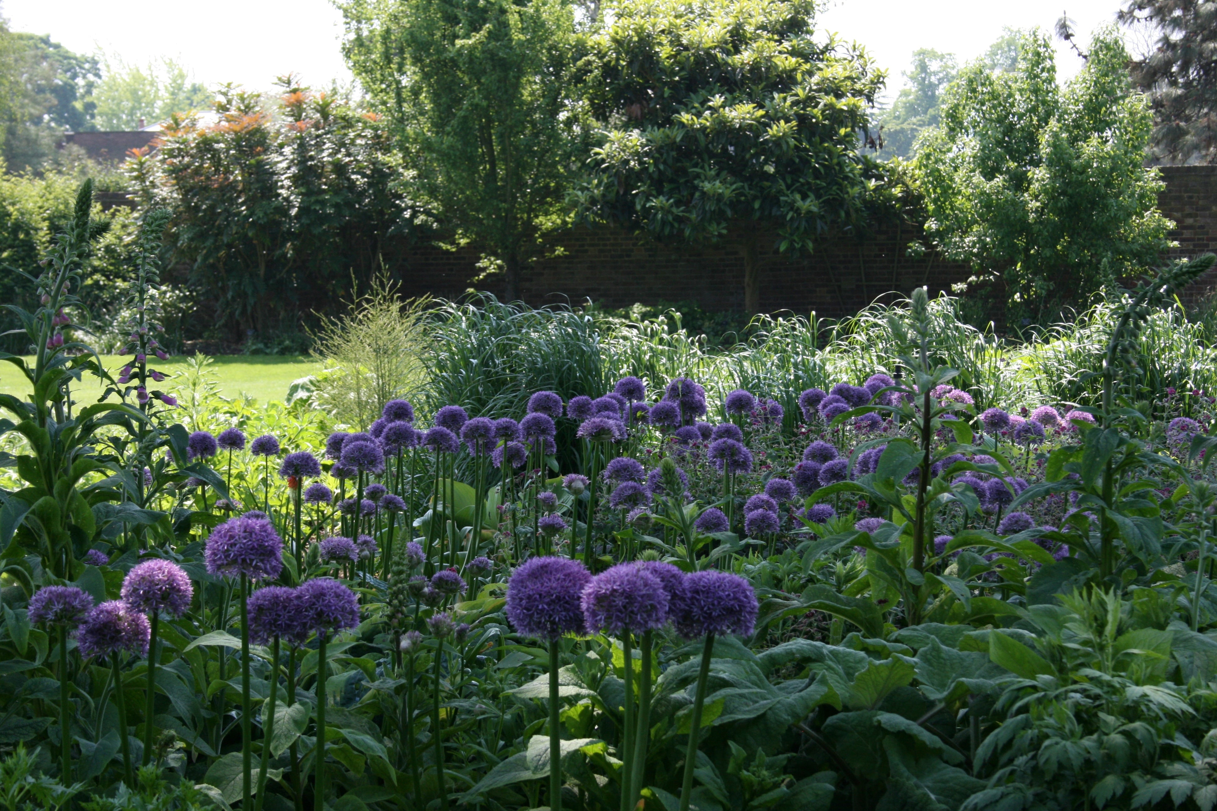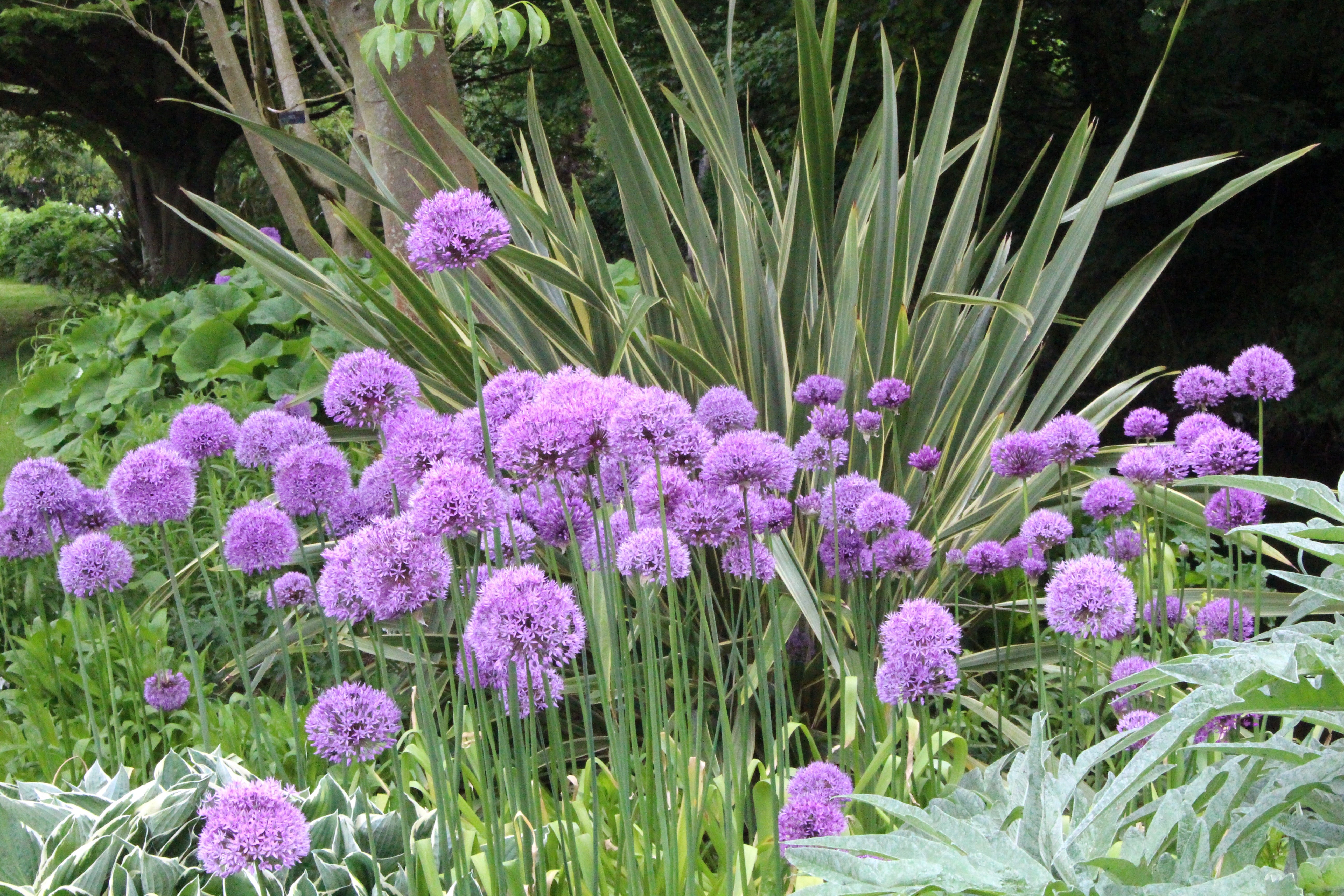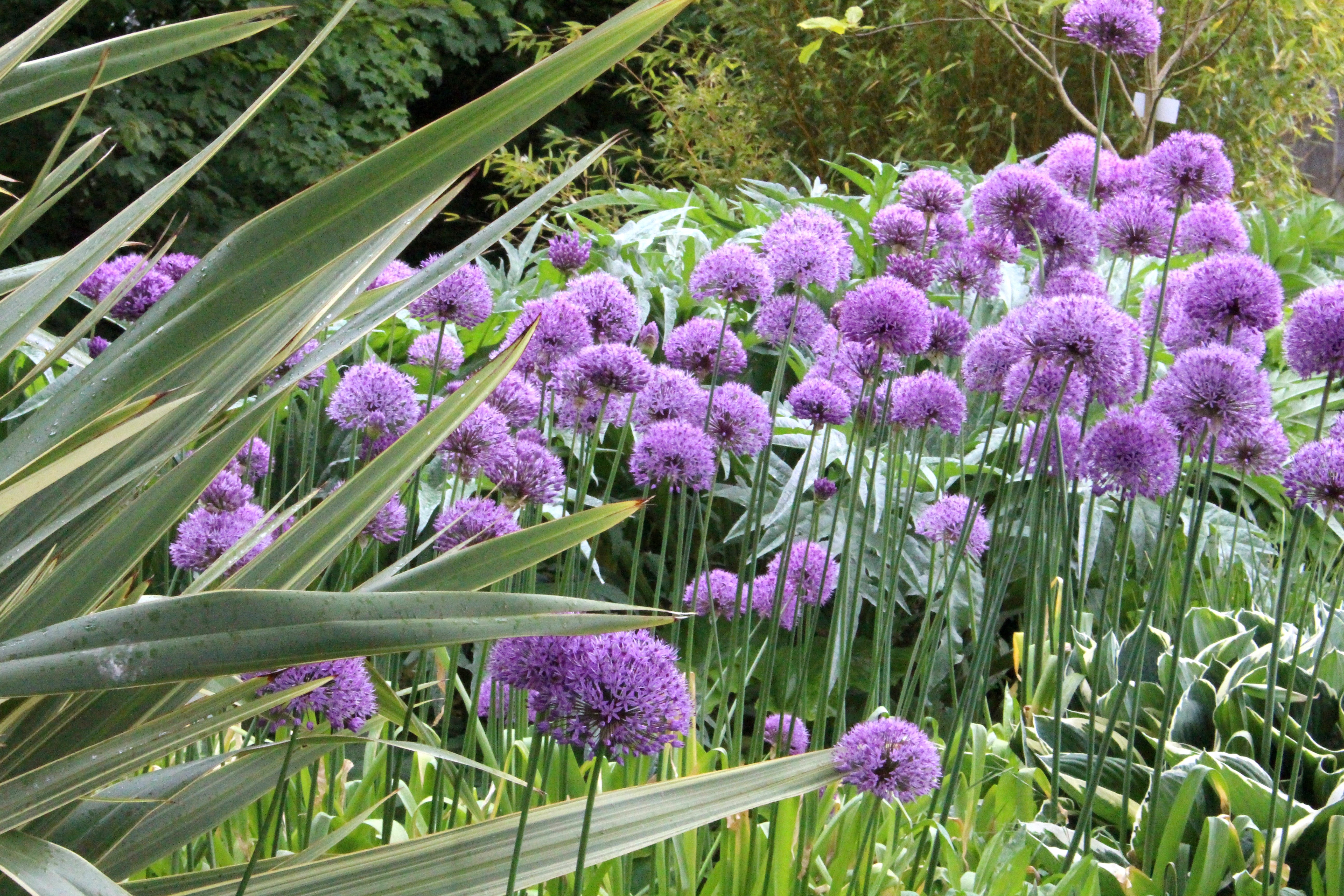 Some ideas: Try Allium next to pastels- we put the smaller ones next to Osteospermum. Or try them with Mediterranean plants like Lavender, Artemisia, Sage, Phlomis and perhaps Rosa. We also think their succulent appearance means they compliment Iris.