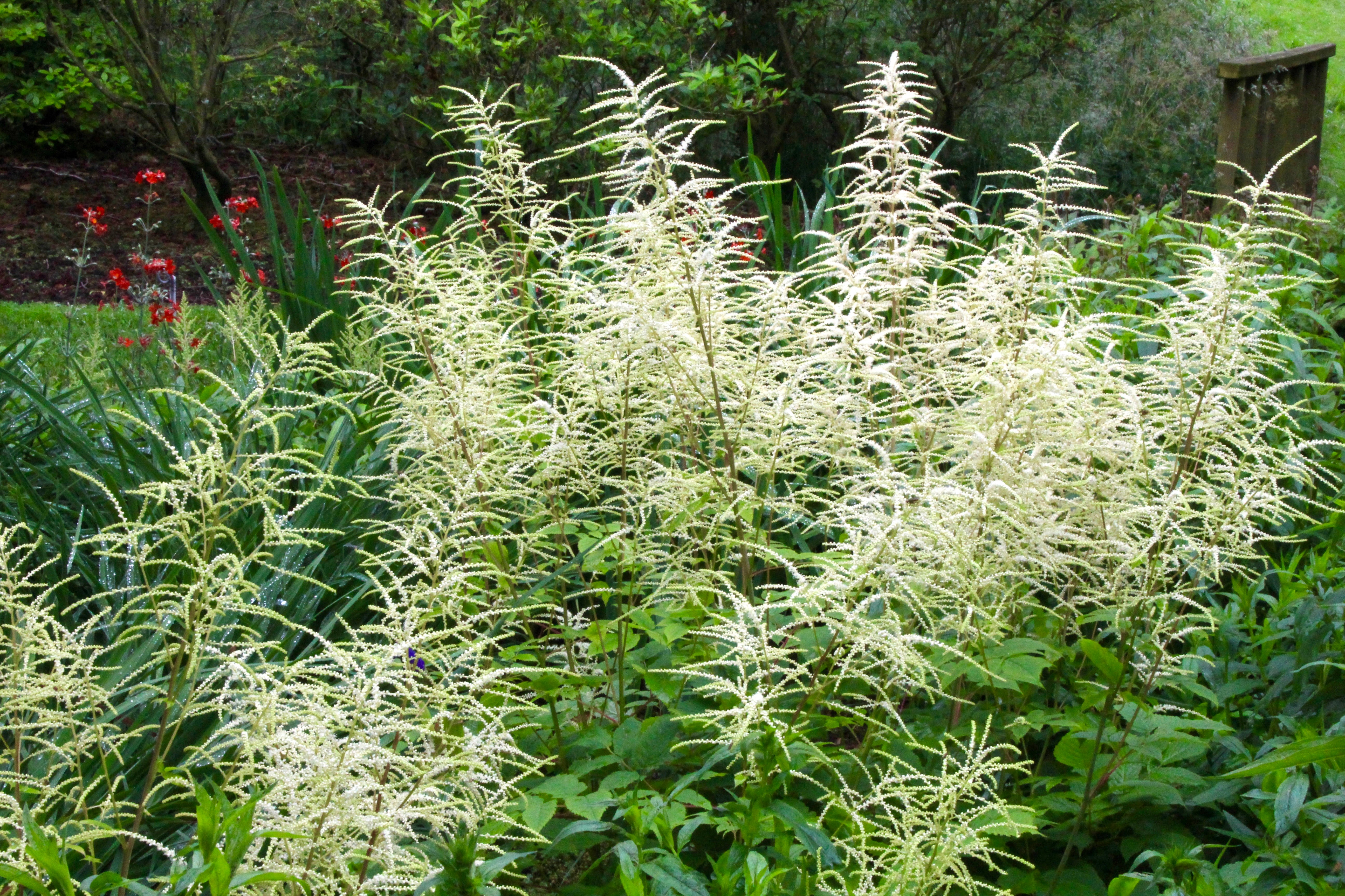 Aruncus will grow almost anywhere that isn’t baked dry by sun. As its native habitat implies it does well in wet areas and pnat combinations that reflect that always look well – try Carex, Hostas, or even Astilbes.