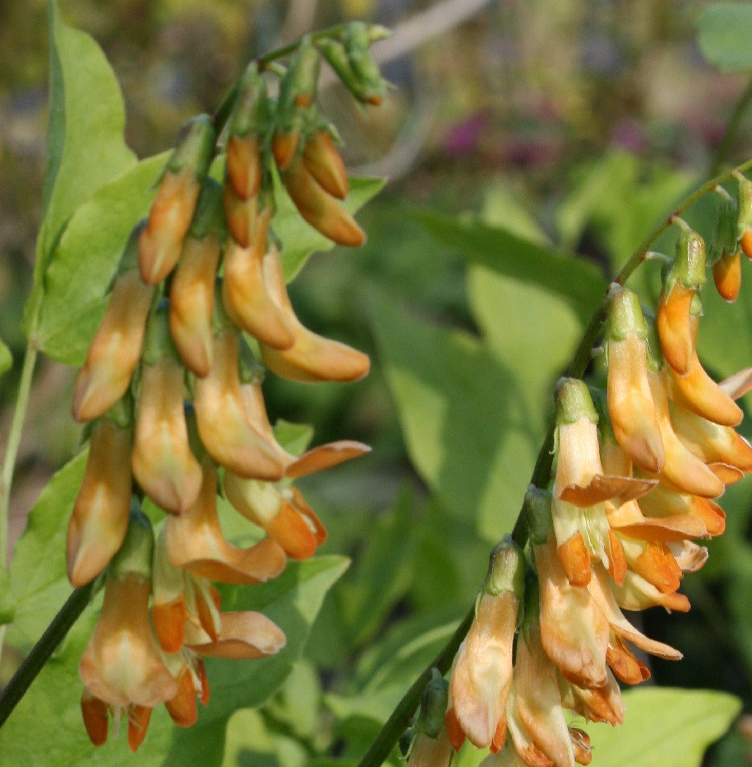 Lathyrus aureus is a hardy perennial cousin to the familiar annual Sweet Pea. It forms a bushy clump of light-green lacy leaves, with spikes of golden-orange pea flowers appearing in early summer. It makes an interesting cut flower (OMG! WHAT IS THAT?). Seldom seen in gardens because they are a pain to propagate. However it performs so well in our garden, and many people ask for it, we tried our best!...you're welcome....(!).