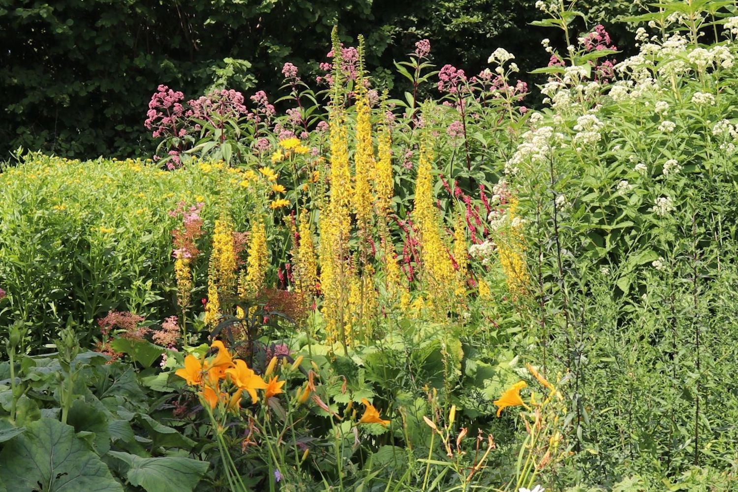 Ligularia prefers moist soil as found in its native habitat along stream banks and other bodies of water. We grow our Ligularia in partial shade, we also grow some in full sun where the soil is sufficiently moist. You can try in in almost full shade areas I'm told. Ligularia pairs well with Hosta, Iris, and ferns . Depending on the species, Ligularia can be used as a backdrop to smaller plants or as a specimen plant.