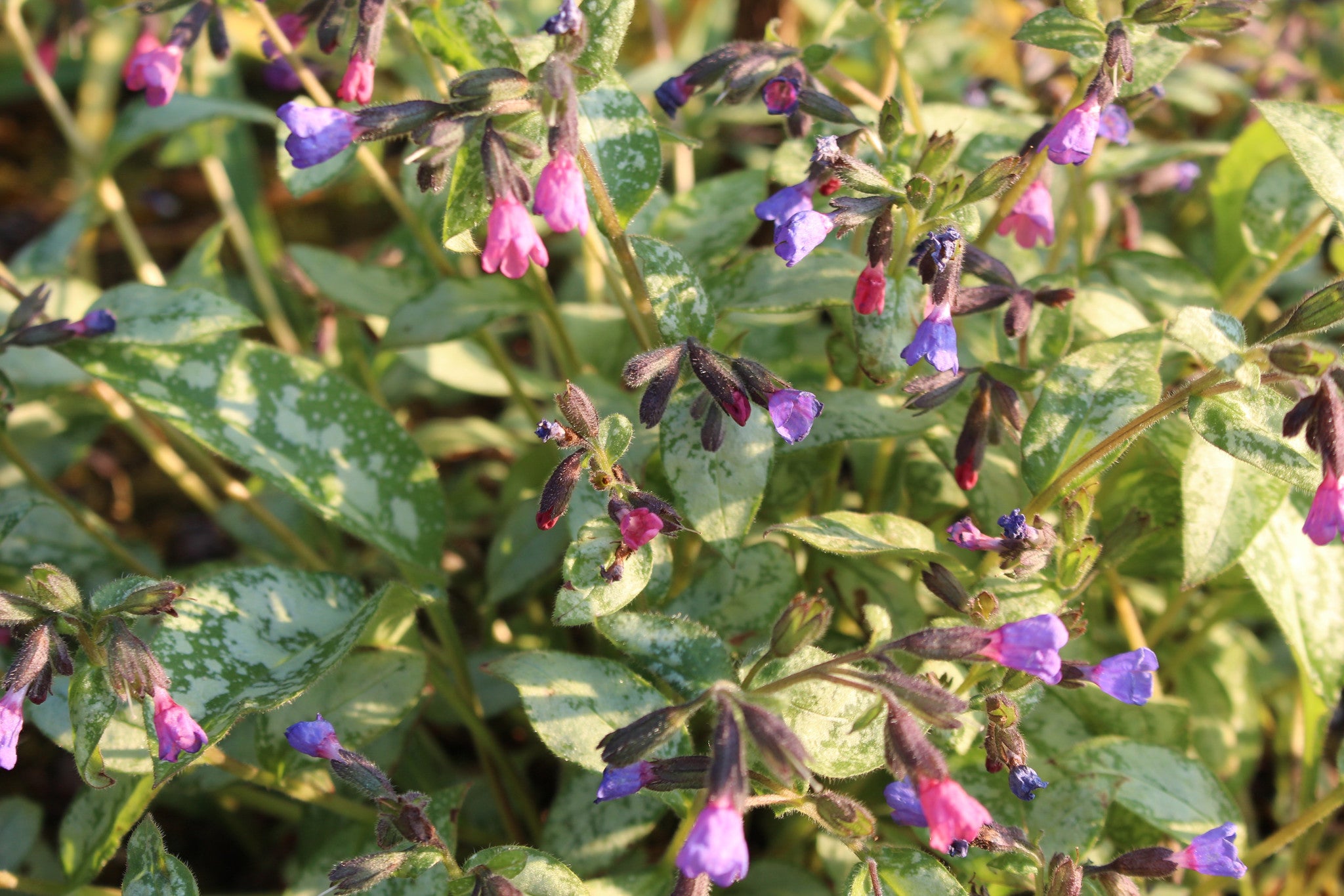 Pulmonaria cultivars rival Hellebores to be the first flowering perennials in the late winter and early spring. Ane of the earliest plants to bloom, you can be picking its urn shaped flowers in February when the rest of the garden still slumbers. The enchantingly speckled foliage of the Pulmonaria look great all winter and as a non-invasive groundcover.