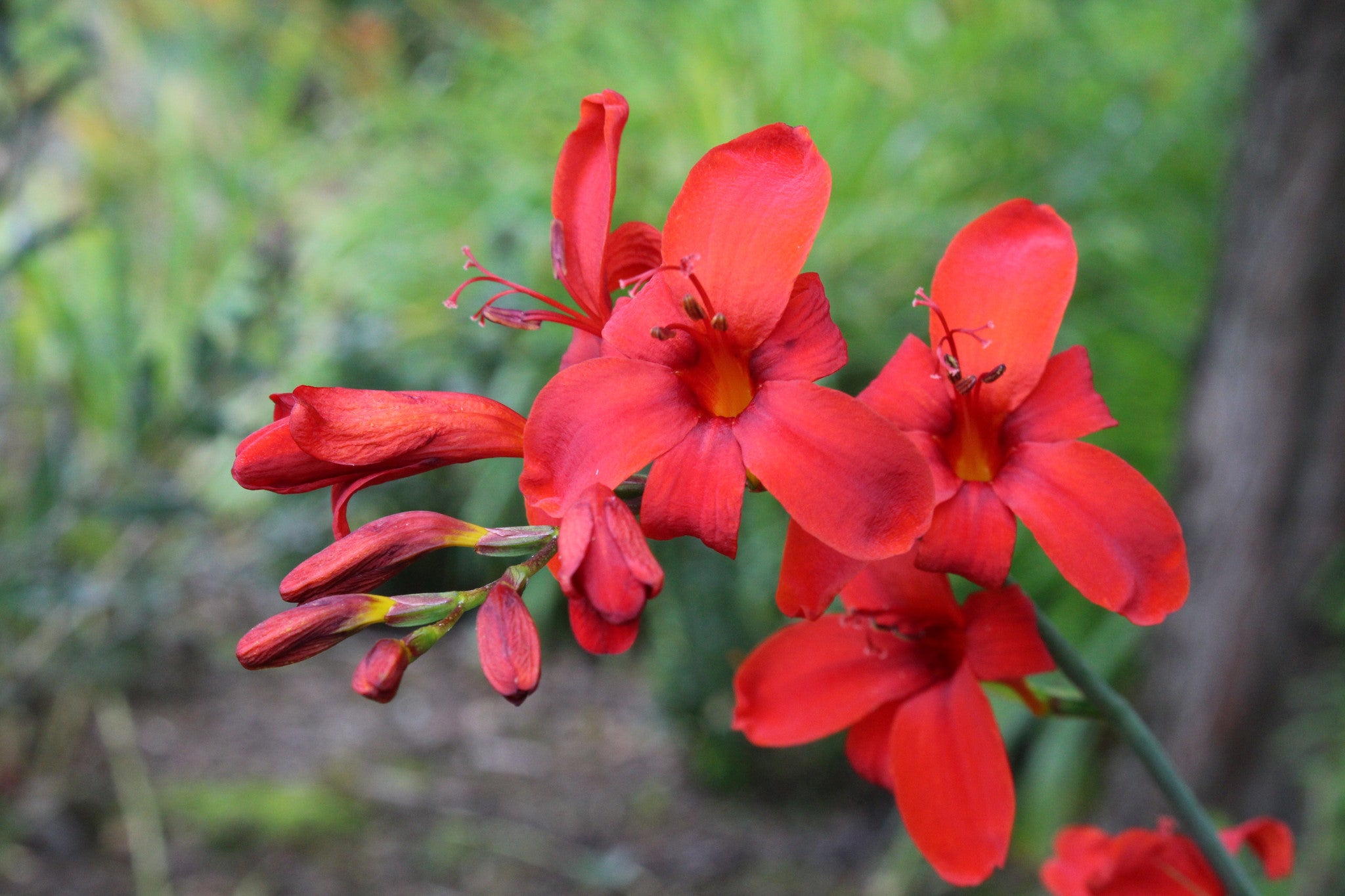 Crocosmia species were first hybridized in the 1870's at the Lemoine nursery in France, and over 400 cultivars have been introduced. However many of the fine old cultivars have sadly been lost to history. The cultivars we have at Ballyrobert vary a bit in habit - some, like the aptly named 'Lucifer', can very vigorous and can take over the garden (if that's what you want) others, like the aptly named Lady Hamilton, are well behaved. As for soil and situation, we find they grow anywhere that isn't too extreme - if you have a very devilish spot in your garden, stick 'Lucifer' in there (pun intended).