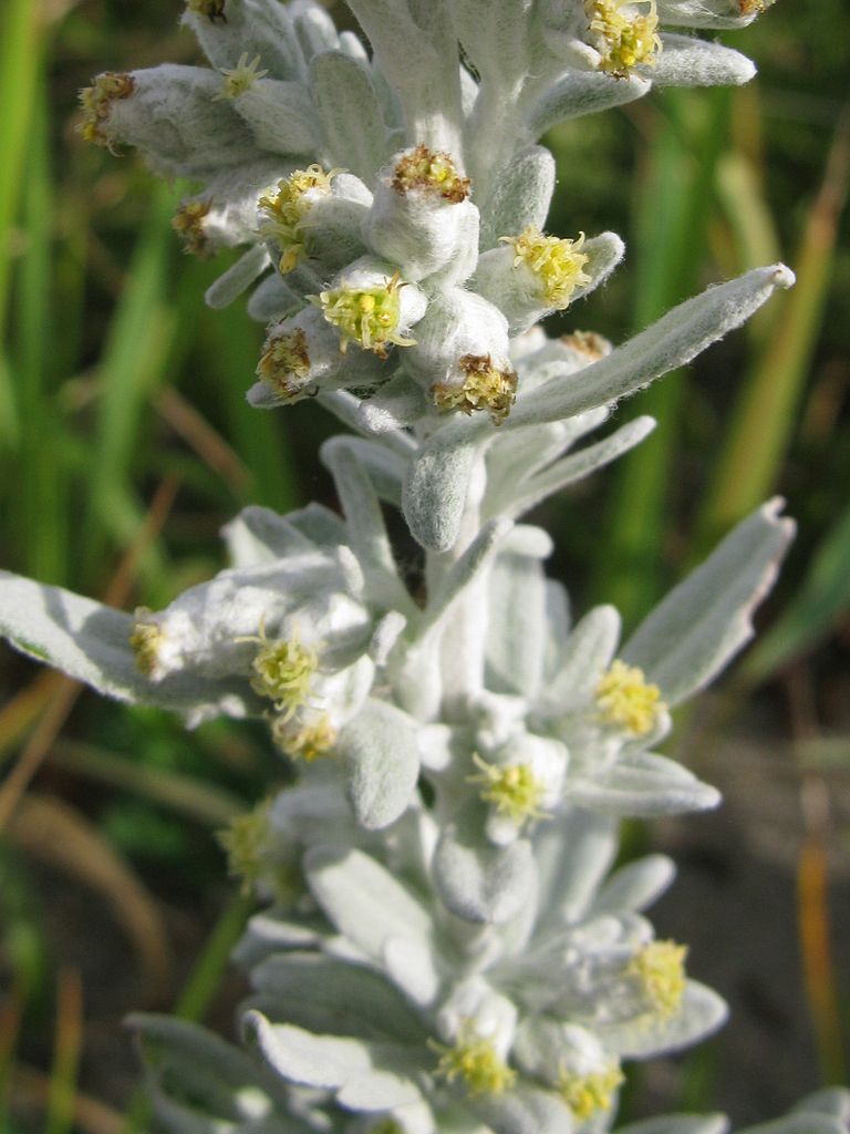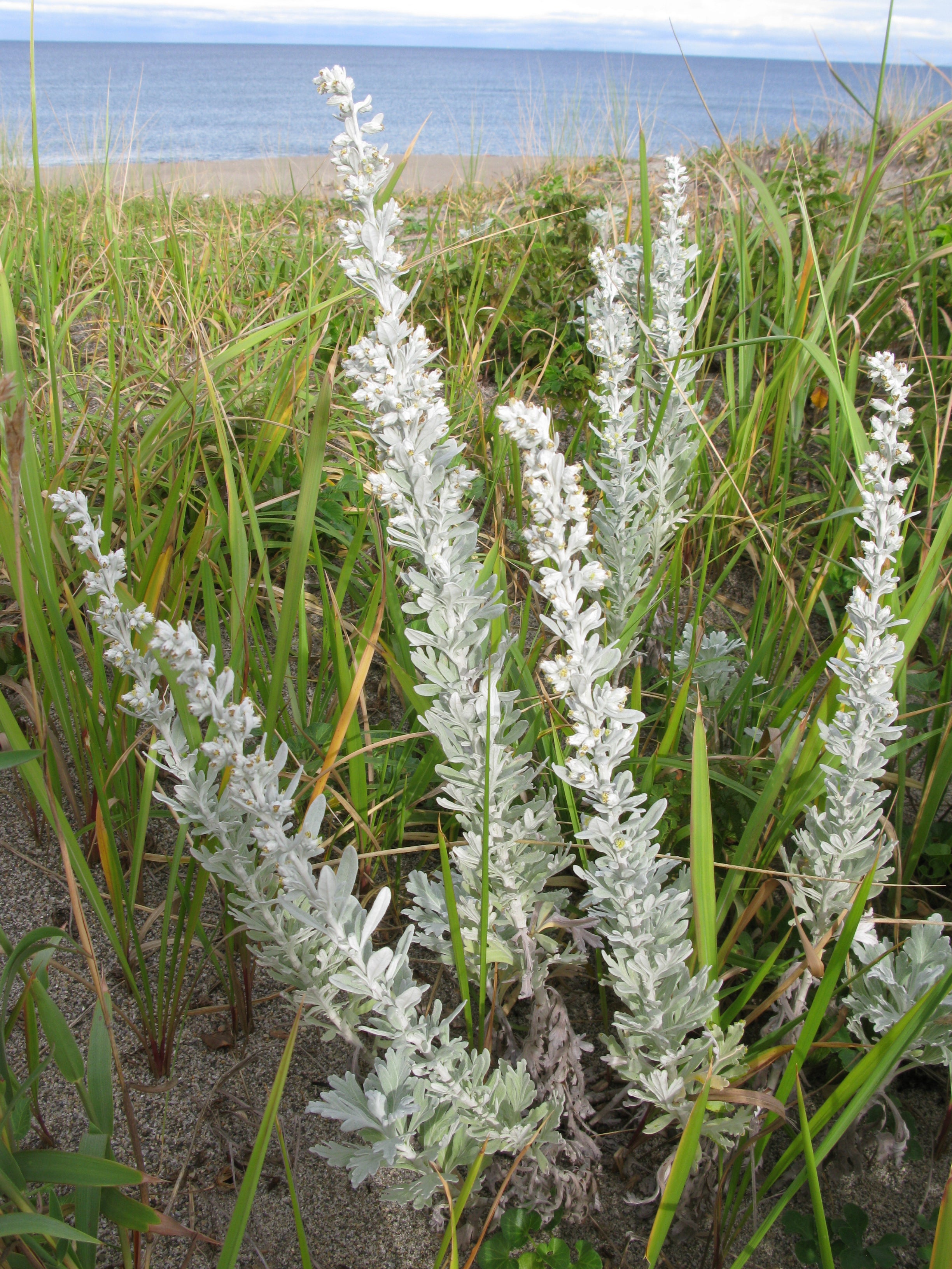 Artemisia stelleriana is native to China, Japan, Korea, and Russia. The species is widely cultivated as an ornamental and naturalized in scattered locations, primarily on coastal dunes and other sandy locations. Common names include hoary mugwort, Dusty Miller, beach wormwood, and oldwoman. There are numerous cultivars, but this is the plain old species. Lovely soft silvery foliage giving a wilder look than other small Artemisia.