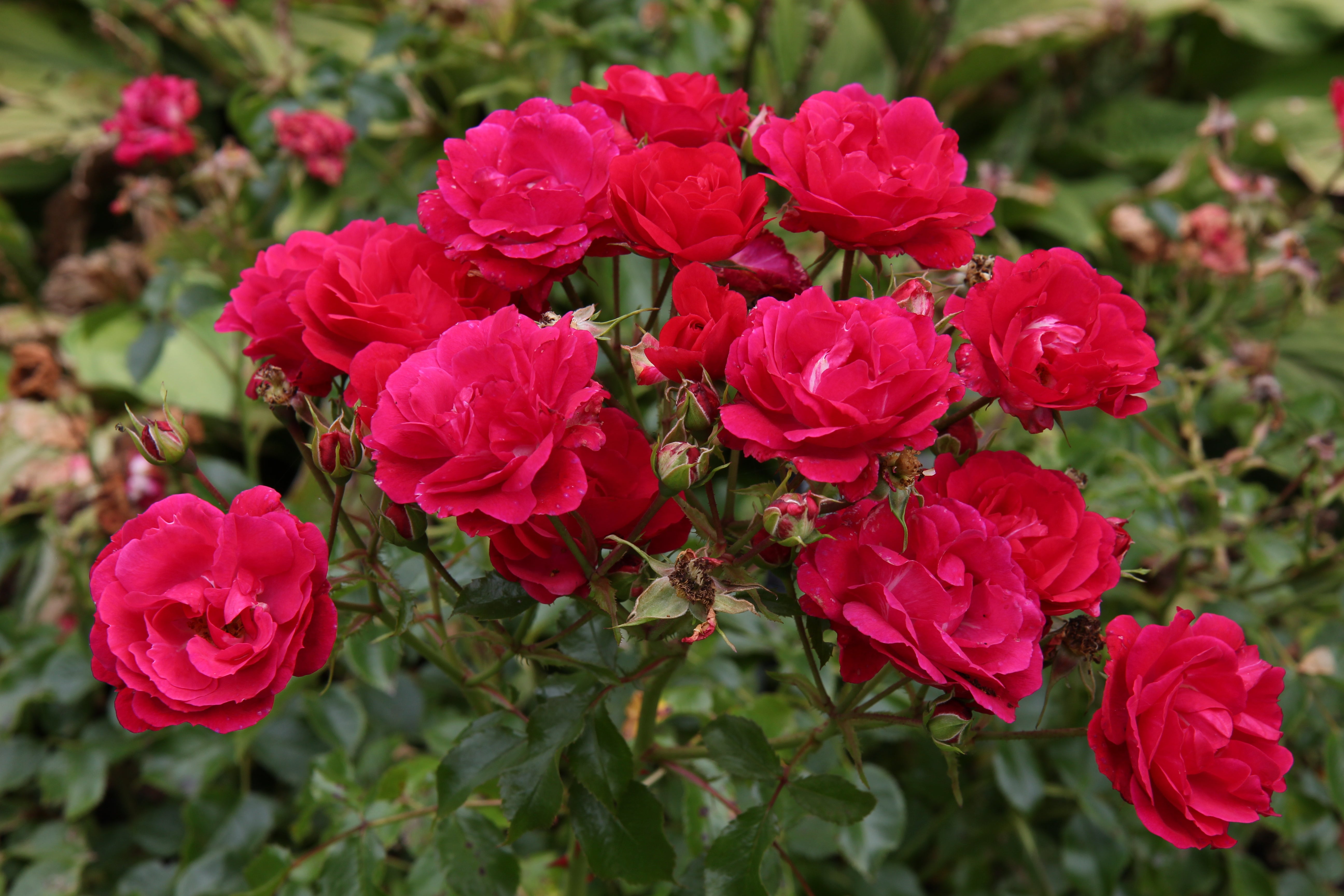 The aggregate fruit of the rose is a berry-like structure called a rose hip. Rose hips are occasionally made into jam, jelly, marmalade, and soup or are brewed for tea, primarily for their high vitamin C content. They are also pressed and filtered to make rose hip syrup. Many Rosa cultivars do not produce hips, as the flowers are so tightly petalled that they do not provide access for pollination. Poor little bees. Rose perfumes are made from rose oil, which is a mixture of volatile essential oils obtained by steam distilling the crushed petals of roses. About two thousand flowers are required to produce one gram of oil! Rose petals also have a variety of culinary uses; from teas to salads and scones to ice creams