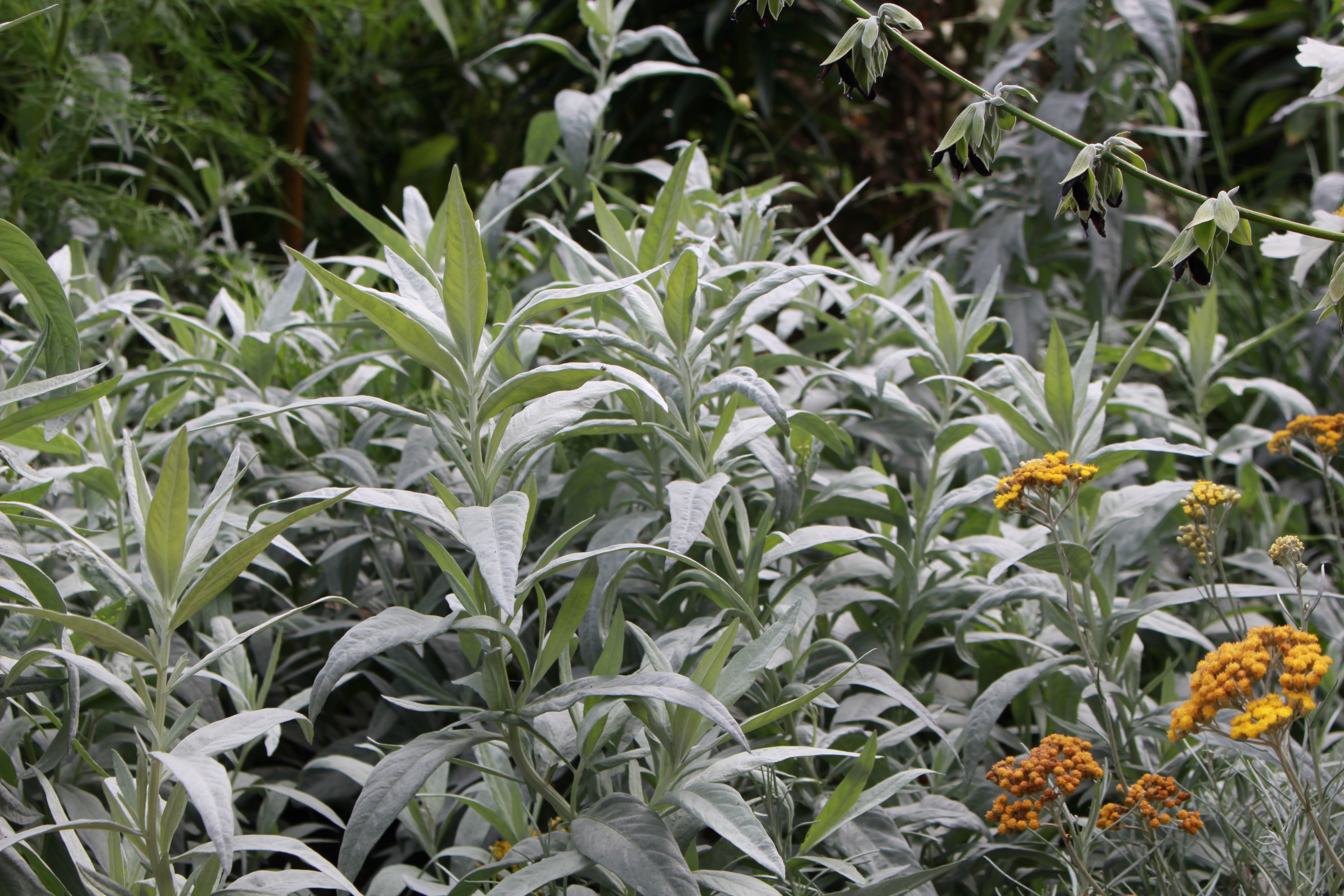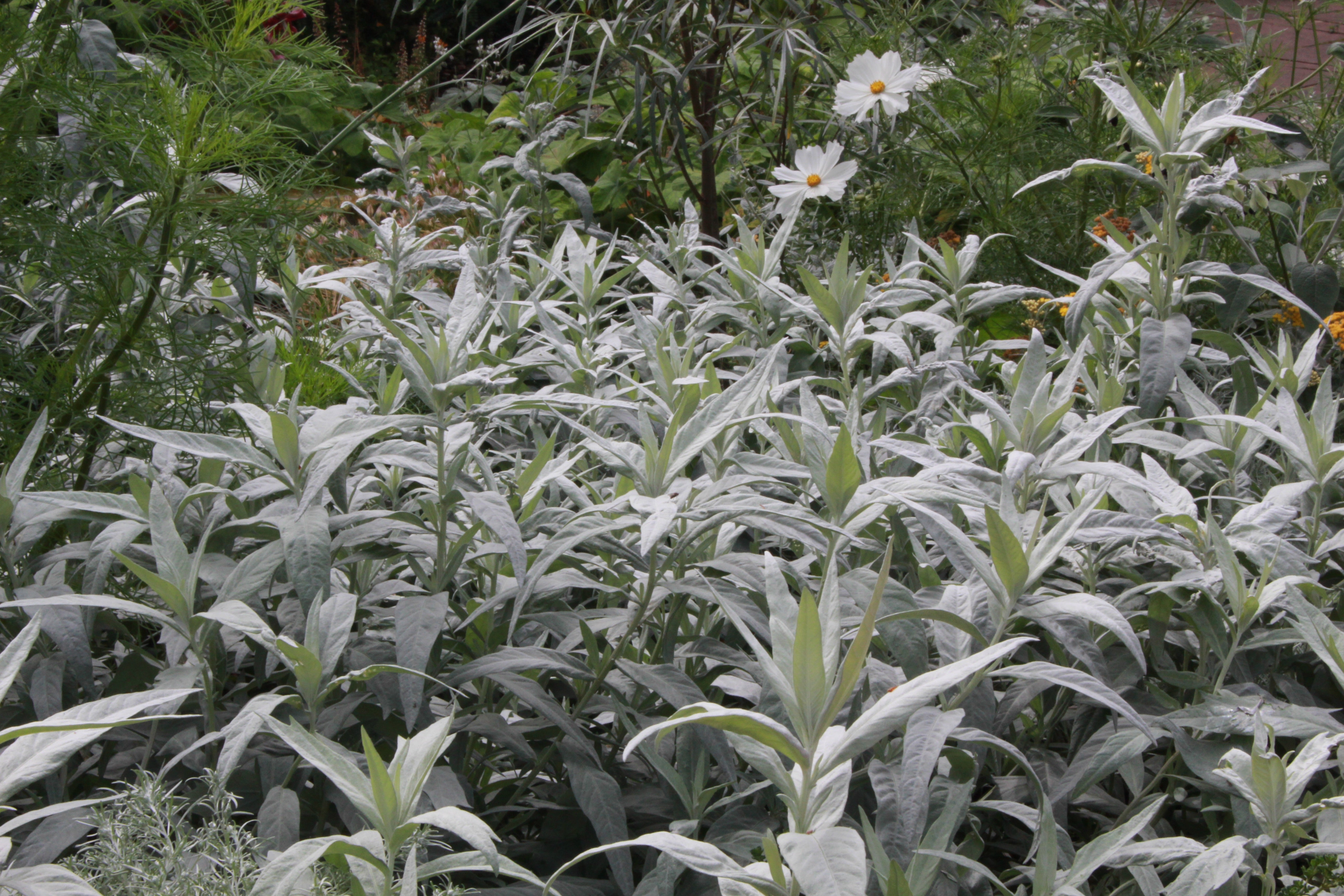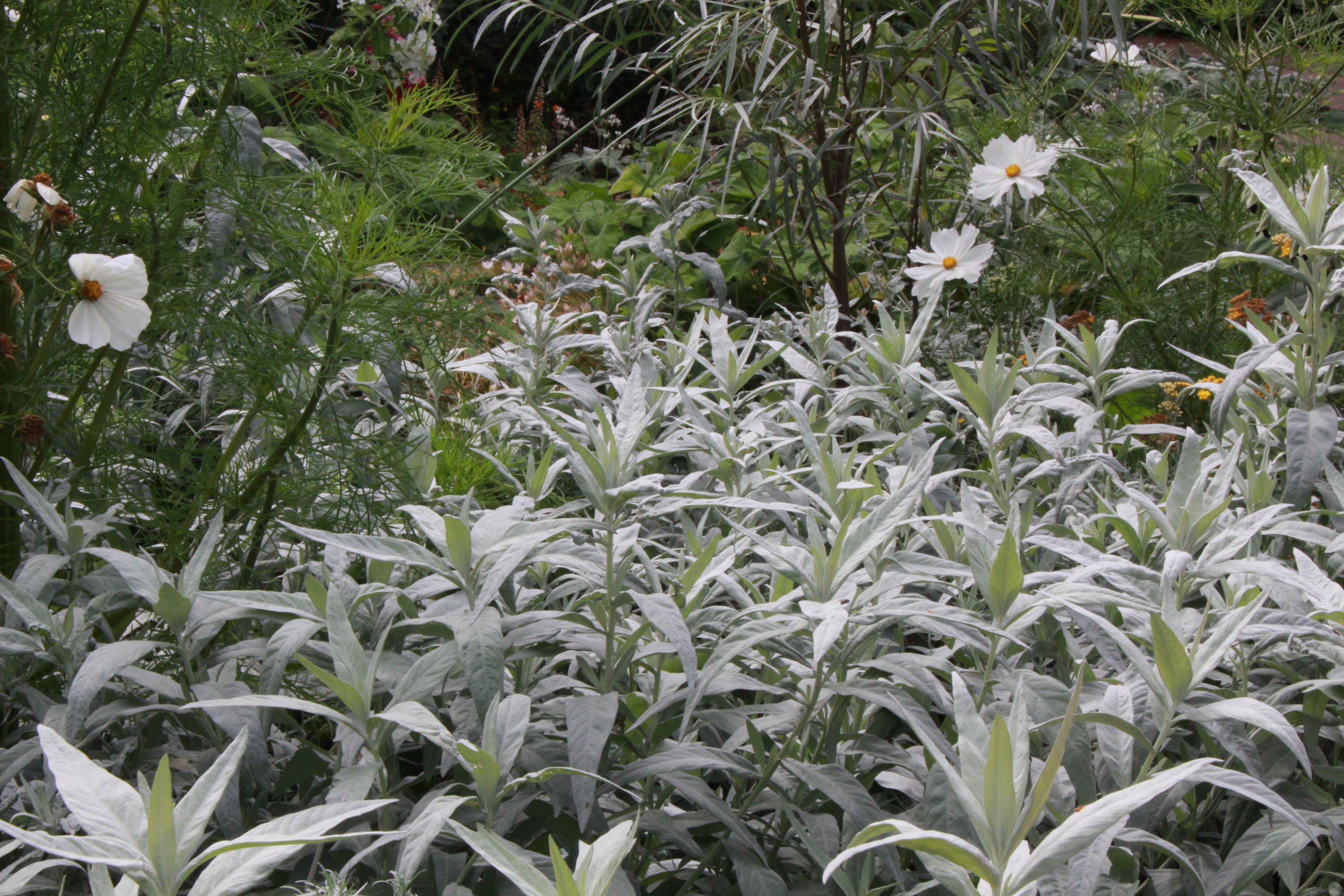 Artemisia ludoviciana 'Valerie Finnis' was apparently introduced by the photographer....Valerie Finnis... who gave it to Beth Chatto who named it after her. Noted for its new shoots whose tips almost look like white flowers. I think it has a lovely wavey habit. In 1993 it was awarded this Royal Horticultural Society Award of Garden Merit. Compared to 'Silver Queen' it has broader foliage and is a smaller plant. The specific epithet ludoviciana is in reference to the Old Louisiana Territory in the USA where the species is native and commonly called white sage.
