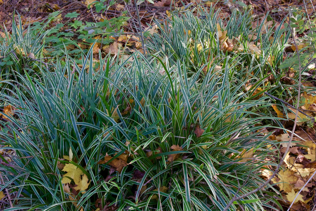 Carex 'Ice Dance' is a dense, spreading sedge which is grown for its foliage effect. Features grass-like, stiff leaves which are dark green in the centre with yellow-white borders, a bit wider than other Carex. The moderate spreading habit of this sedge (most sedges are clump-forming) facilitates covering woodland areas with it. Still, it also looks great in a pot.