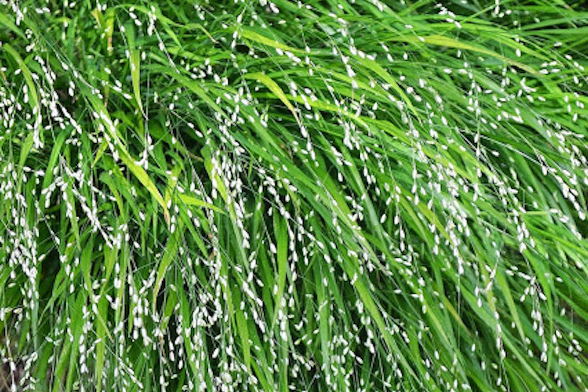 Flat, thin, rough, linear, pointed, green leaves with ovate, purple-brown, flower spikelets appear in summer in minimally-branched panicles that sway beautifully in the breeze.
