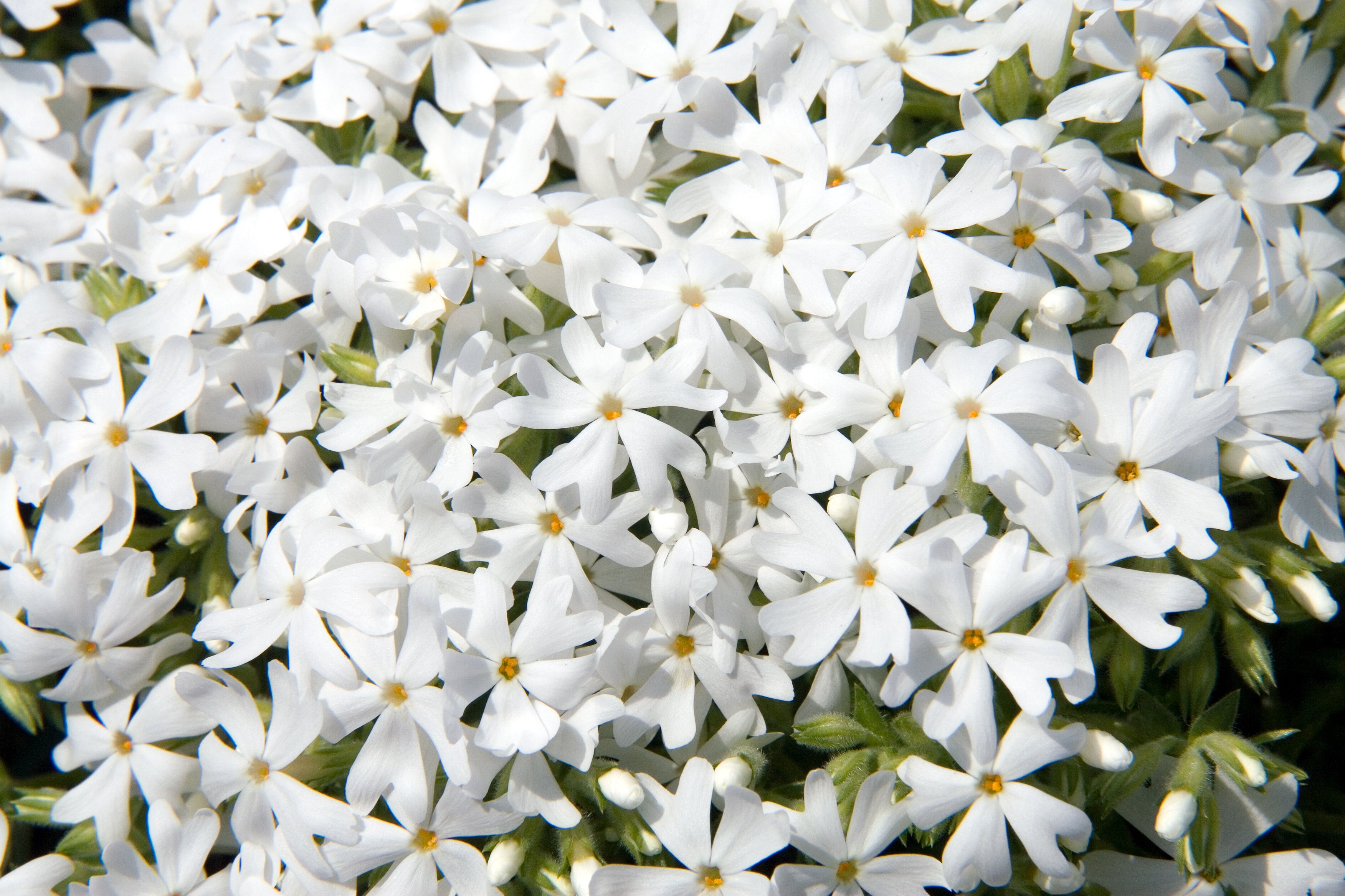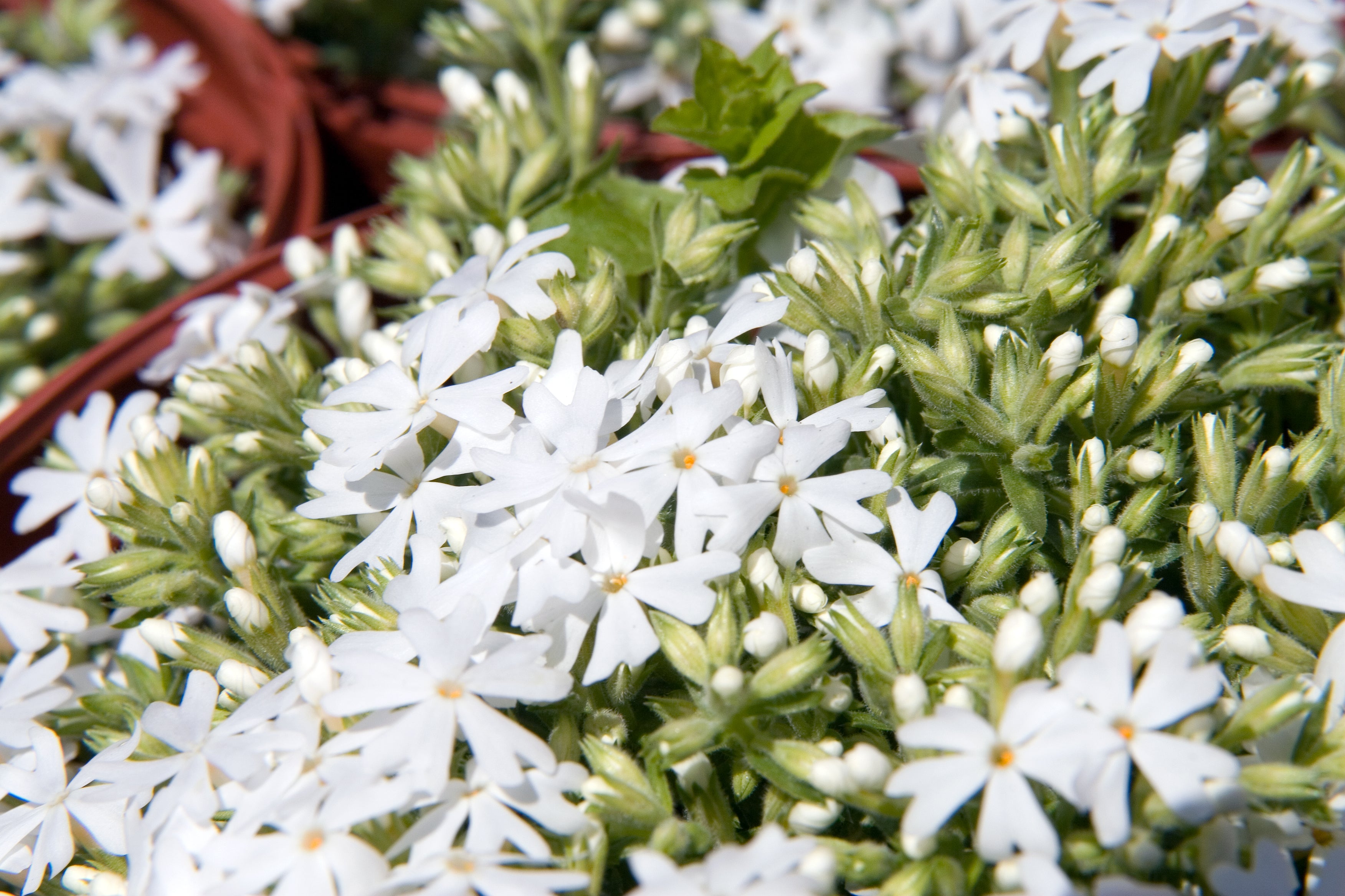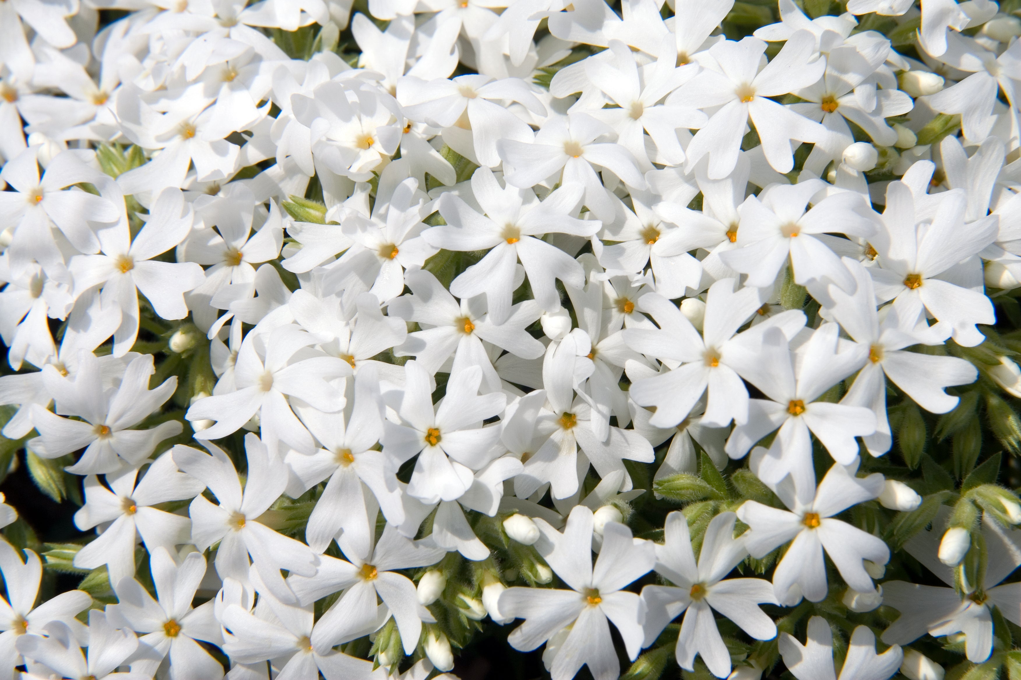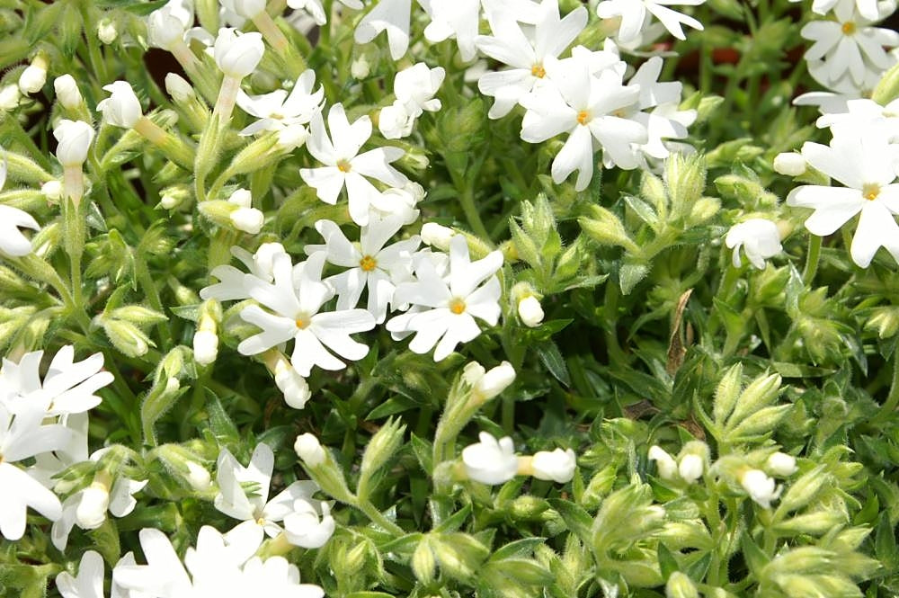 Phlox subulata 'Snowflake' is a prostrate, mat-forming evergreen alpine with fine, green needle-like leaves and star-shaped pure white flowers in spring and summer. Very thick flower mat - snow in the summer!