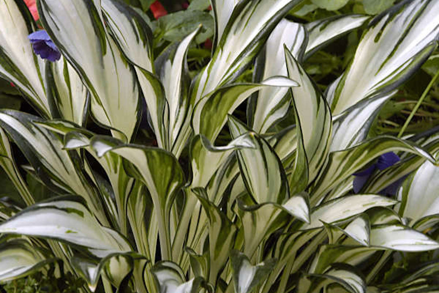 Hosta 'Fireworks' has distinguished lineage. It occurred around 2001 as a sport of Hosta 'Loyalist', which was a sport of Hosta 'Patriot', which was a sport of Hosta 'Francee', which was a sport of Hosta 'Fortunei'. The end result is a dwarf Hosta with a habit that can strangely suggest Fireworks! It also resembles a very good garden plant. The RHS agree and awarded it their AGM in 2012. Longish narrow leaves.
