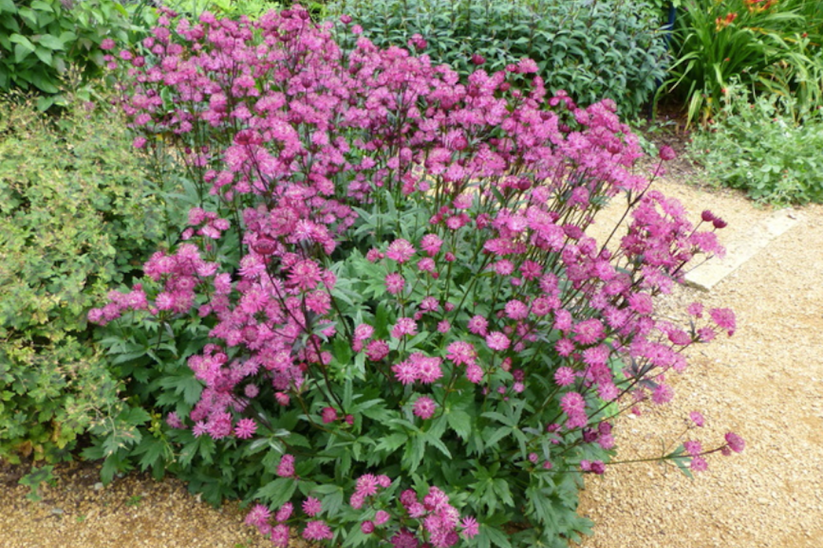 Sometimes this Genus is known as Masterwort or Hatties pincushion. The Genus name comes from a Greek word 'astron' meaning star in reference to the flower head shape or from magistrantia (derived from the Latin word 'magister' meaning master or teacher).