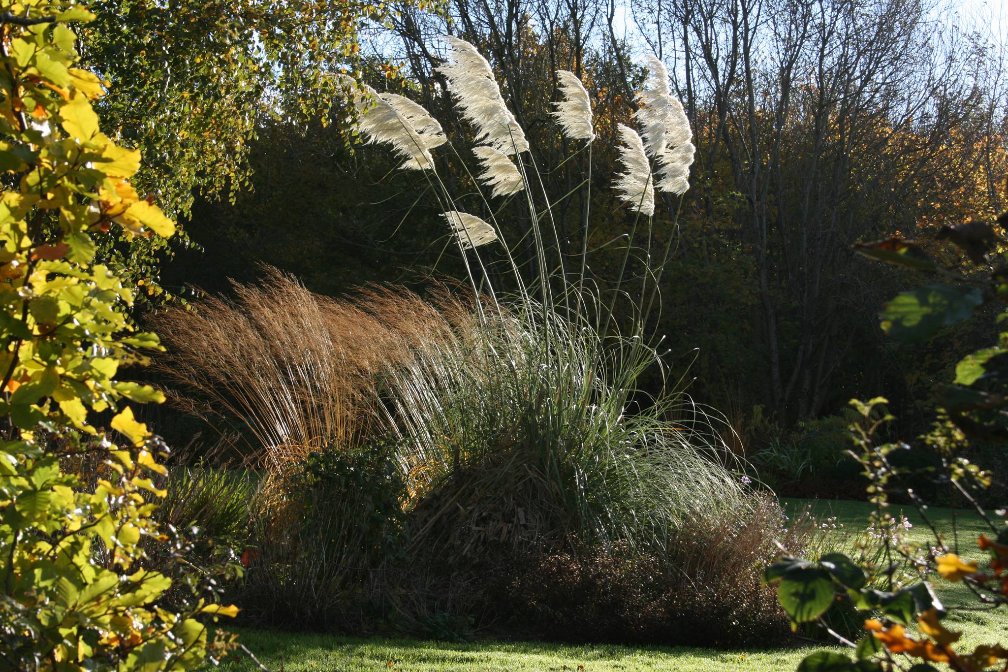 Books will say "Like most prairie plants, Cortaderia prefers full sun and well-drained soil. " Well, the ones we sell grow perfectly well here in wet clay at Ballyrobert; we have photographic evidence!  Cortaderia is often a large plant and needs a large spot in the garden. It pairs well with other substantial plants such as shrubs and small trees like Ilex (Holly), Acer (Maple) and Cornus (Dogwood), but we also pair it with 'prairie'plants like Rudbeckia and other grasses.