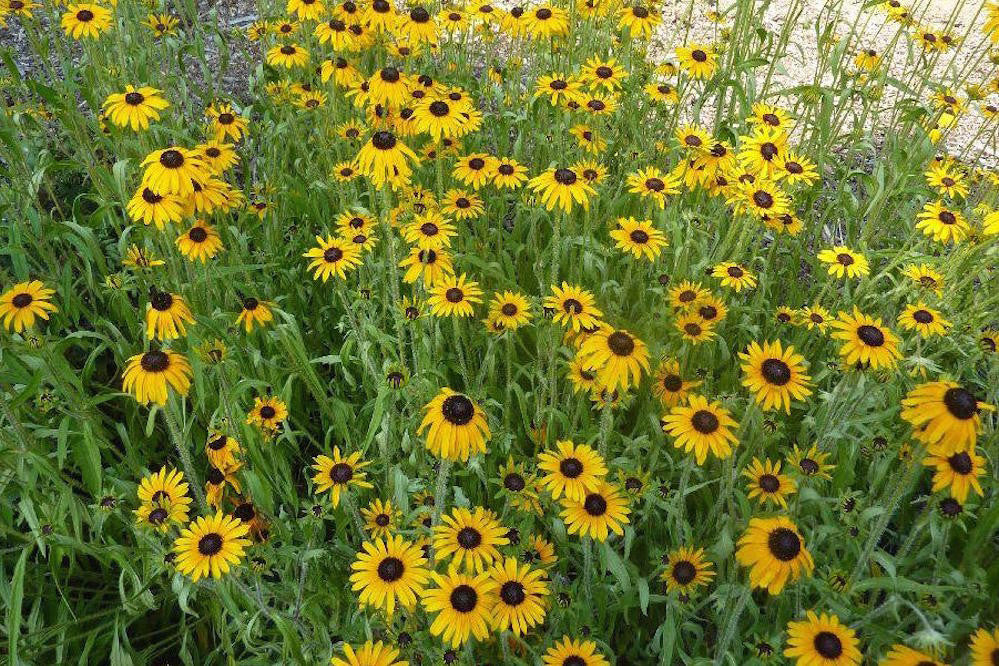 Rudbeckia is a tough summer-flowering perennial grows almost anywhere that isn't full shade or a pond. It is a tough, low maintenance plant which makes it perfect for wet gardens. Where happy, Rudbeckia spreads into a slowly widening clump that gets more floriferous each year. Rudbeckia flowers attract butterflies and the seed heads are a favorite of goldfinches; and they look great in the autumn when the petals fall off.