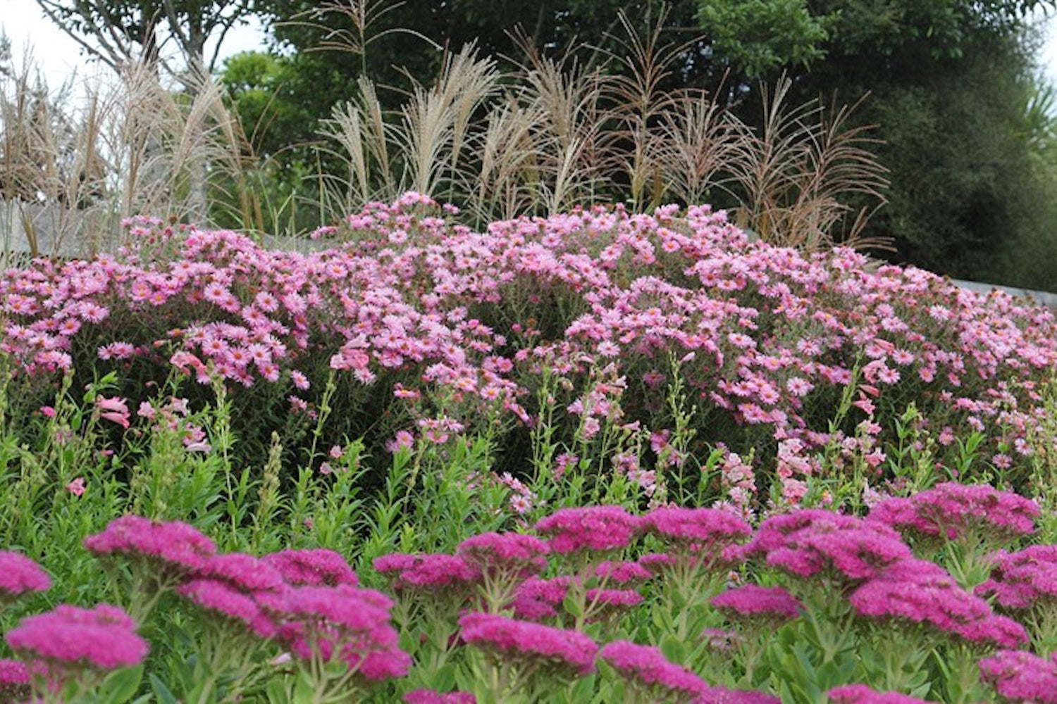 We think every garden should have space for Aster – they can be used in a variety of ways. Commonly they are put beside early flowering plants (like Lupins, Delphiniums and Papaver) in order to keep interest in that area once the earlier flowering plant has faded. However they also pair well with flowers such as Amsonia, Aolidago, Rudbekia, Helenium, Helianthus, and grasses such as Stipa. We have also experimented with Sedum, Astrantia and even Crocosmia (see photos).