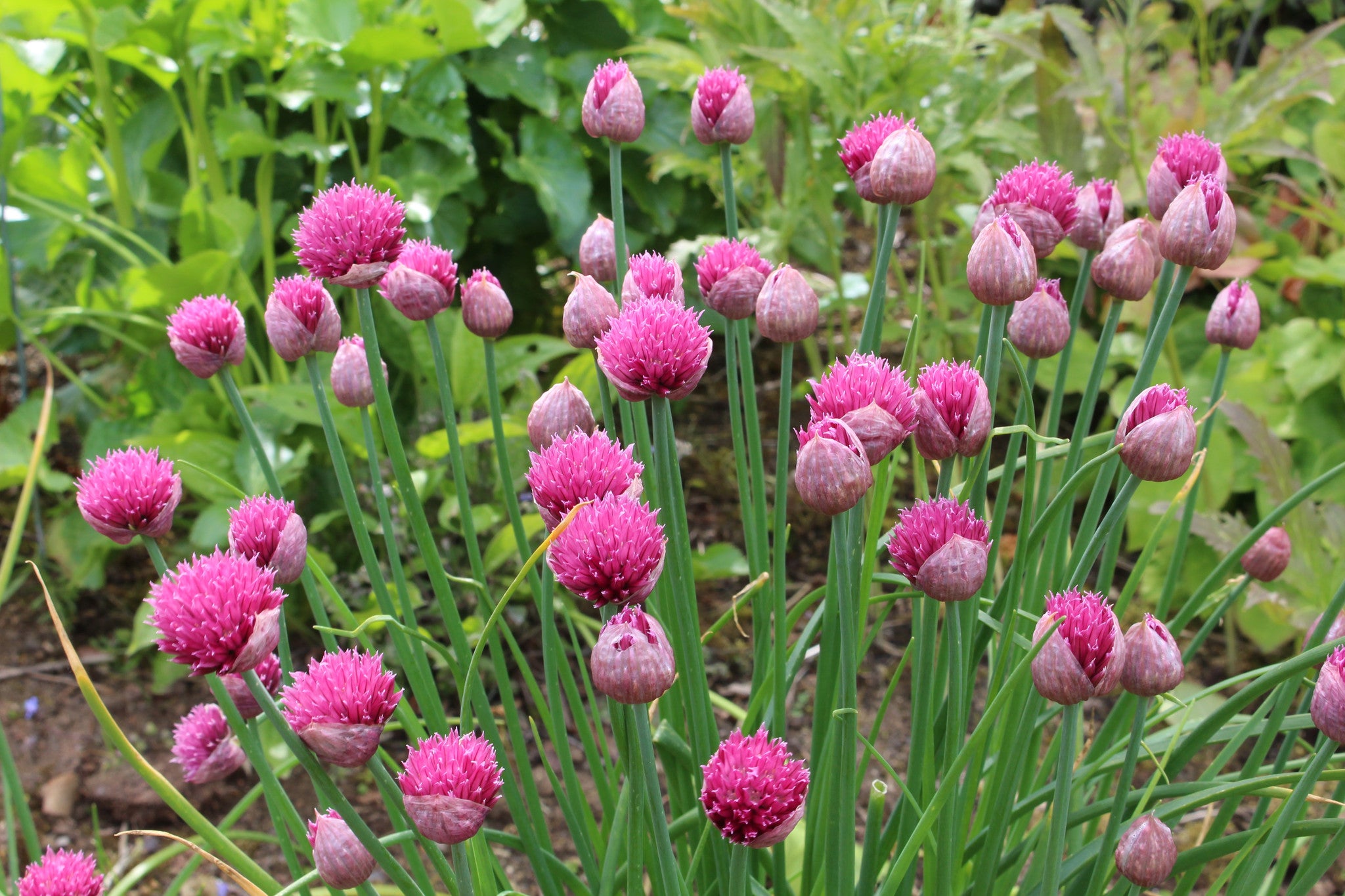 Allium schoenoprasum 'Pink Perfection' is a smaller, very floriferous, cultivar of Allium. The flowers are pure pink on this ornamental chive (Allium schoenoprasum= Chive) and also look great in a salad! We love this cultivar - it is almost a ground cover plant. Looks great with Osteospurnum.