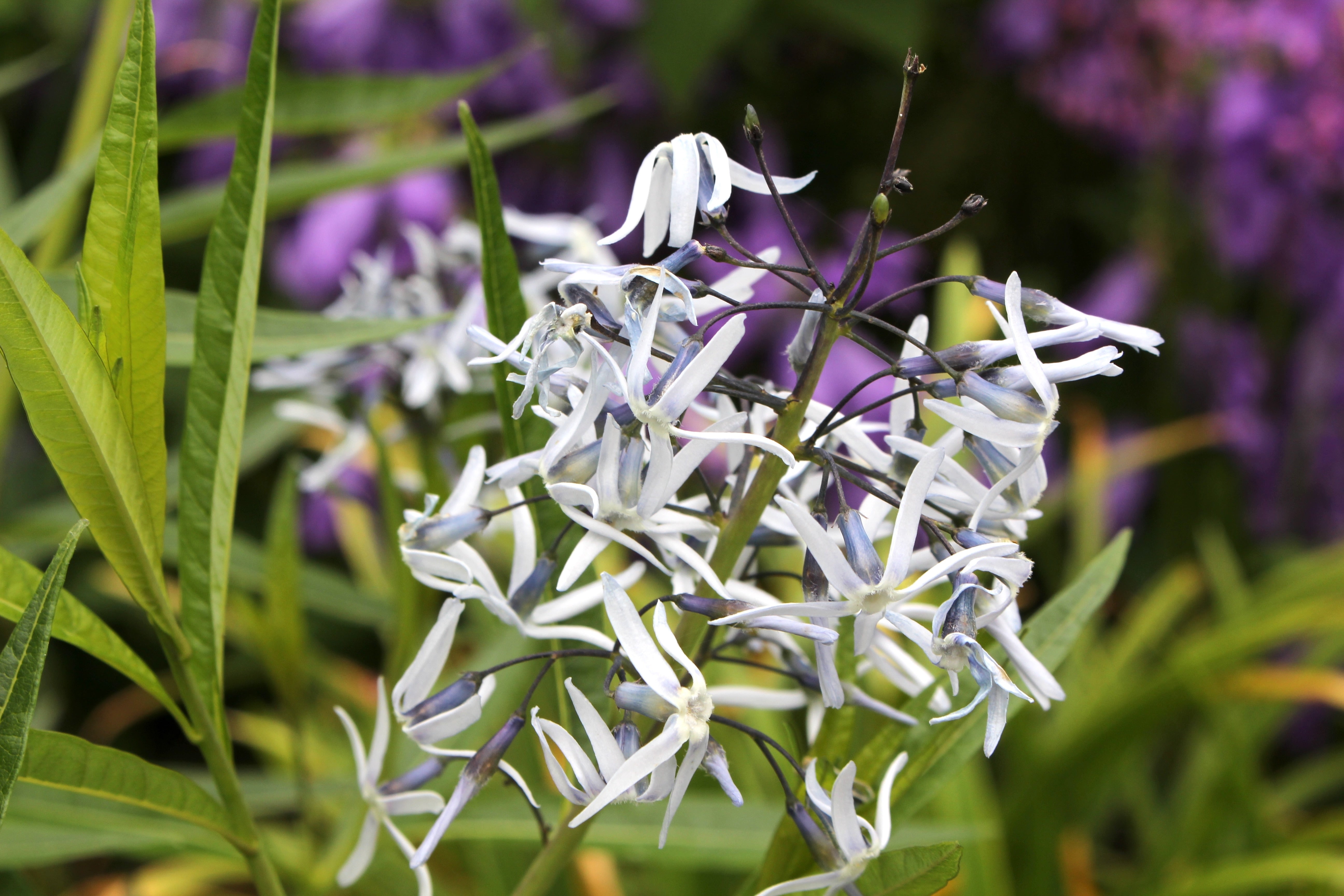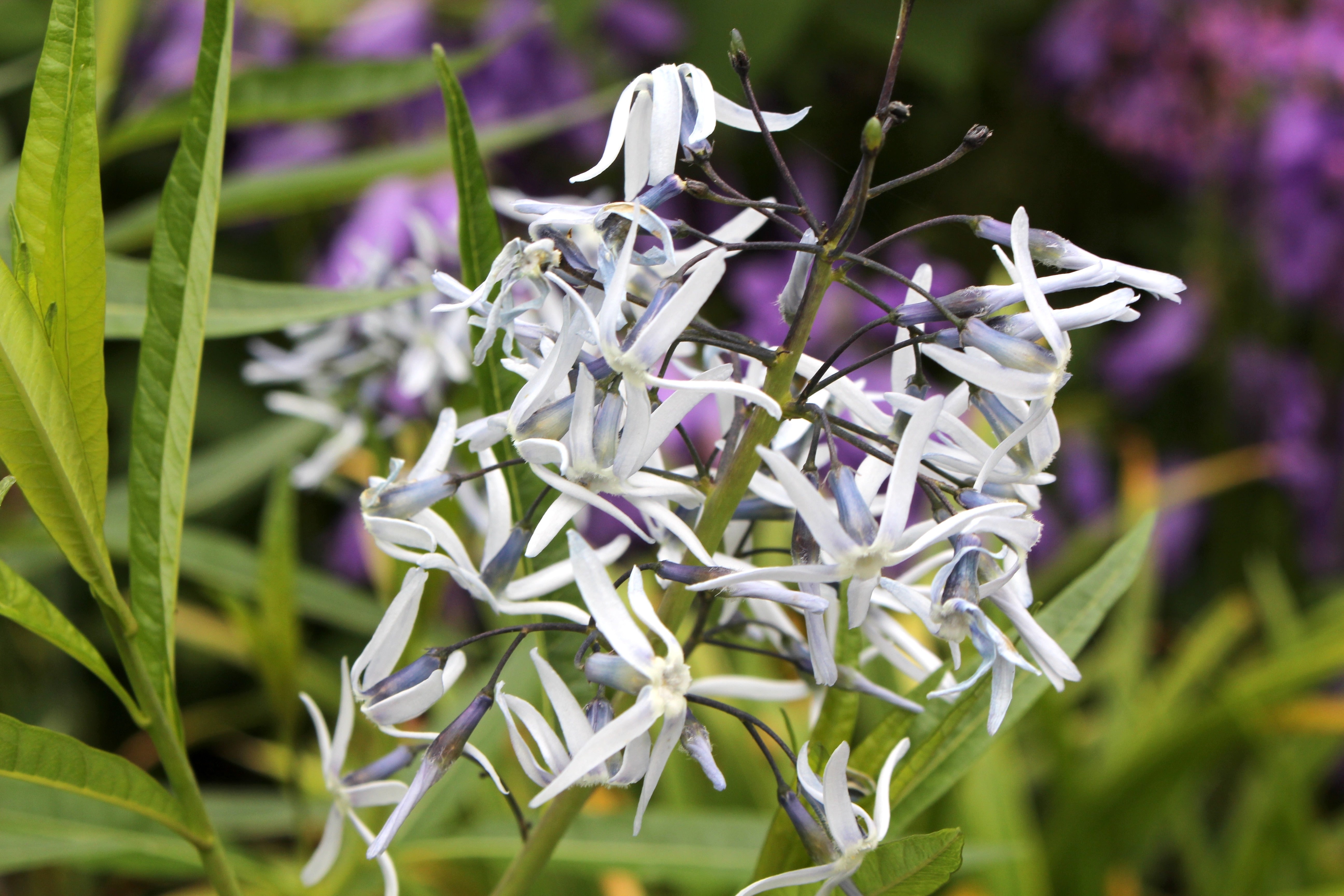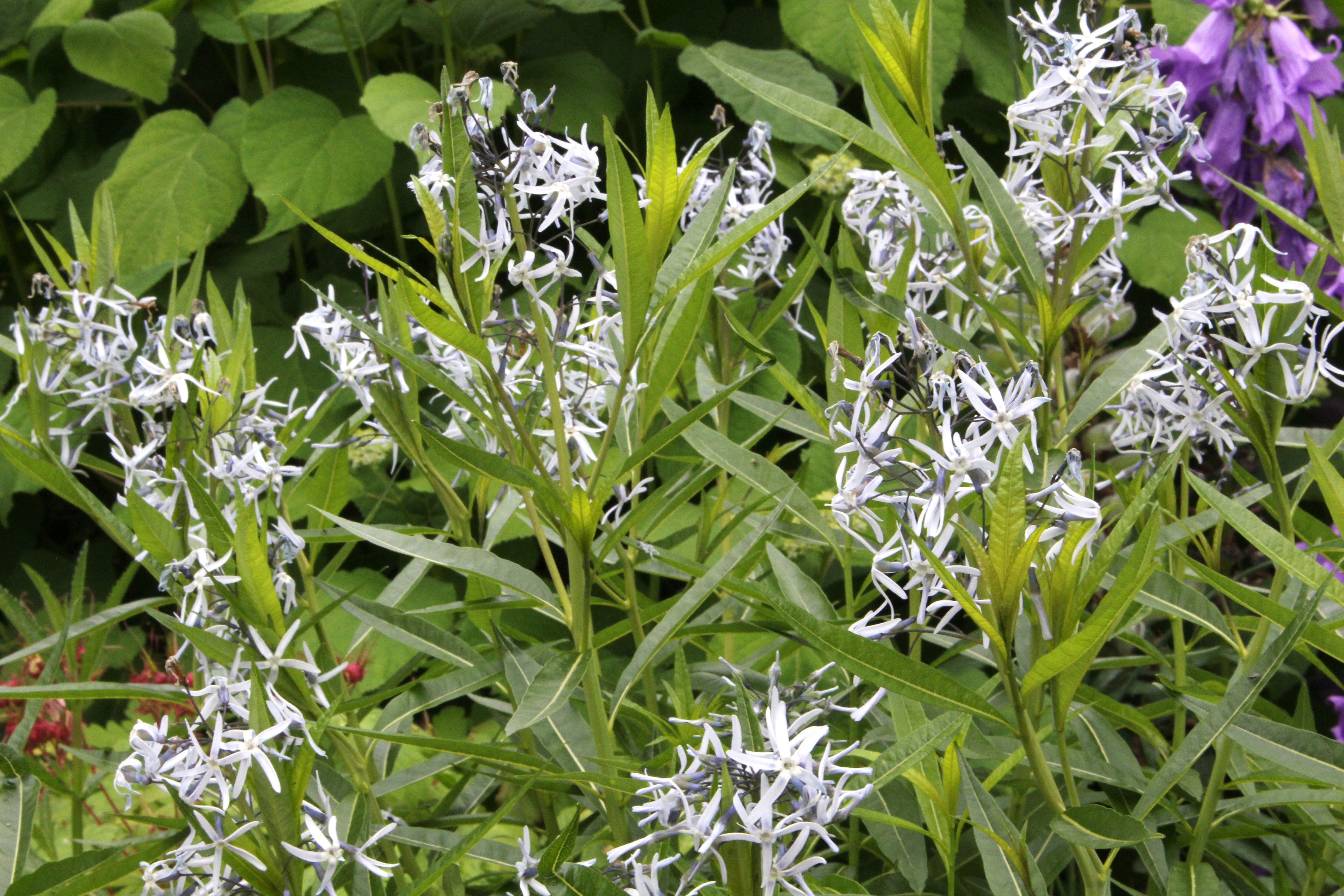 Amsonia are clump-forming perennials with milky sap (containing latex), lance-shaped leaves and terminal panicles of small, starry blue flowers in spring and summer. They are not invasive, easy in any soil or situation, slug and snail resistant, fully hardy, and flower reliably each year. They should be a garden staple! They are named after Charles Amson, an 18th-century physician from Virginia, but are often commonly named Blue Star.