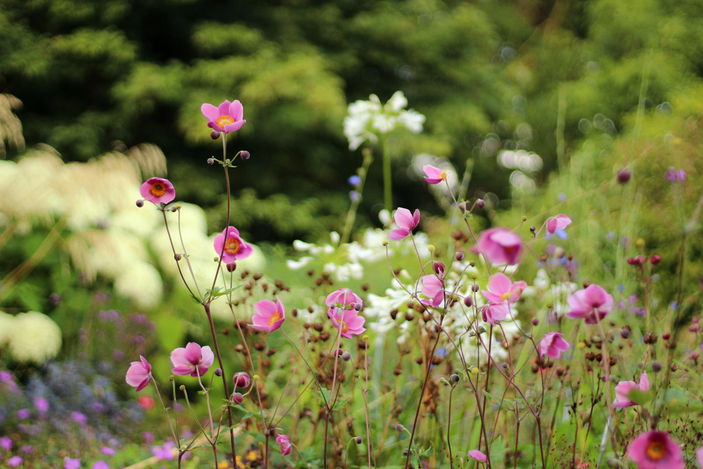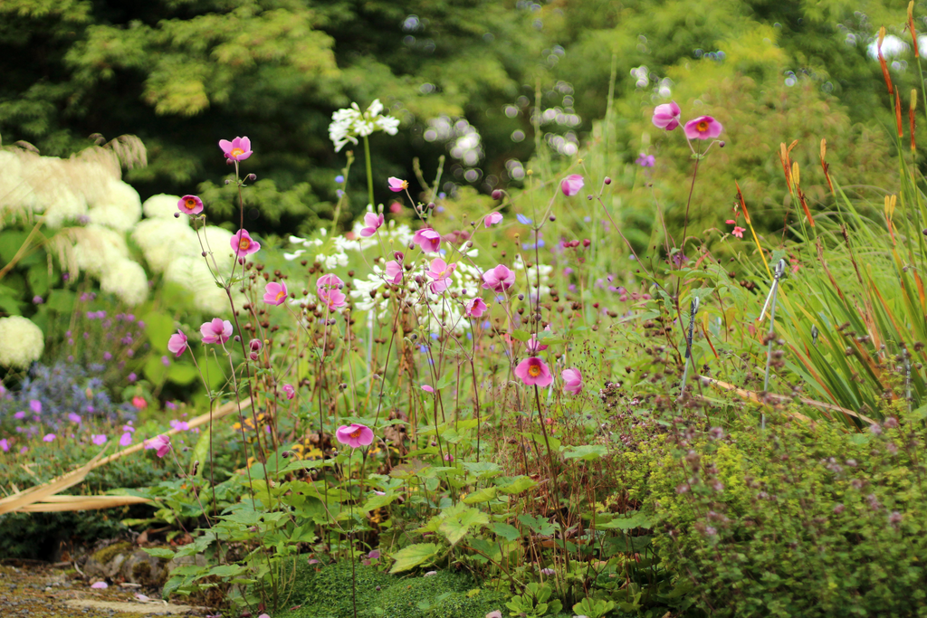 This sounds boring, but in general we prefer to plant most of our Anemone on their own in larger-than-average clumps. The most obvious exception are the Japanese forms, Anemone hupehensis (which are actually from Hupeh in China, not Japan). These grow a bit taller and can compliment daisy type flowers like Aster and Rudbeckia. Fuchsia, Hydrangea, and Geranium also work well with some Anemone.