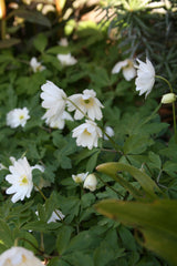 This sounds boring, but in general we prefer to plant most of our Anemone on their own in larger-than-average clumps. The most obvious exception are the Japanese forms, Anemone hupehensis (which are actually from Hupeh in China, not Japan). These grow a bit taller and can compliment daisy type flowers like Aster and Rudbeckia. Fuchsia, Hydrangea, and Geranium also work well with some Anemone.
