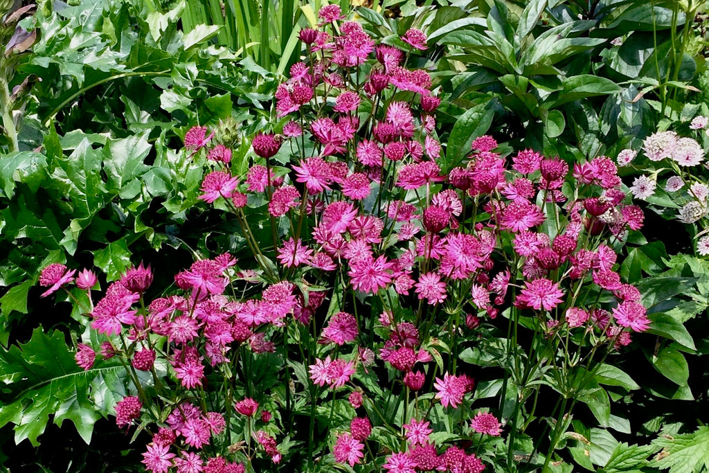 Astrantia is an upright herbaceous perennial that is probably our favorite plant in the garden at Ballyrobert. We find that nearly every Astrantia cultivar grows well in nearly every soil and situation; from shade to sun, from dry to wet, from clay to sand! They look great in sun when buzzing with insects but they can also be used in some troublesome part-shade areas. When the flowers die back they dry out very quickly, go light brown, and stay upright - this gives wonderful structure if you decide not to cut them back. This makes a wonderful cut or dried flower, hence the prevalence in the industry.