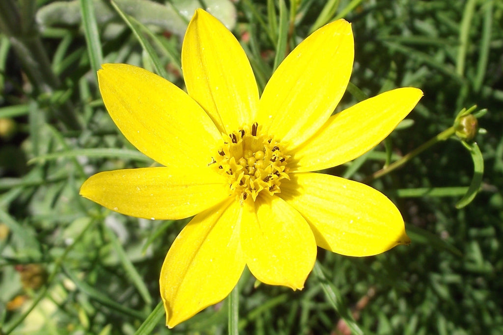 Coreopsis species are perennial wildflowers recognized around the world for being tough, durable garden plants. They are members of the daisy family. The name Coreopsis is derived from the Greek word koris, meaning "tick" or "bug"and opsis meaning "view" - because the seed looks like a bug: hence the common name tickseed.