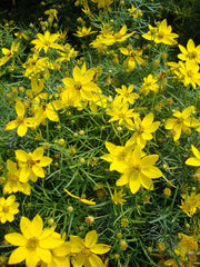 The fine textured foliage of Coreopsis pairs very well with coarser textured plants such as Agapanthus, Kniphofias, Crocosmias or Monarda. Because it can tolerate drought try it with grasses such as Stipa. We grow ours in between 'med' plants such as Nepeta an Salvia. Coreopsis looks best in large groups, or woven among other perennials. The flowers also attract butterflies and make great cut flowers.