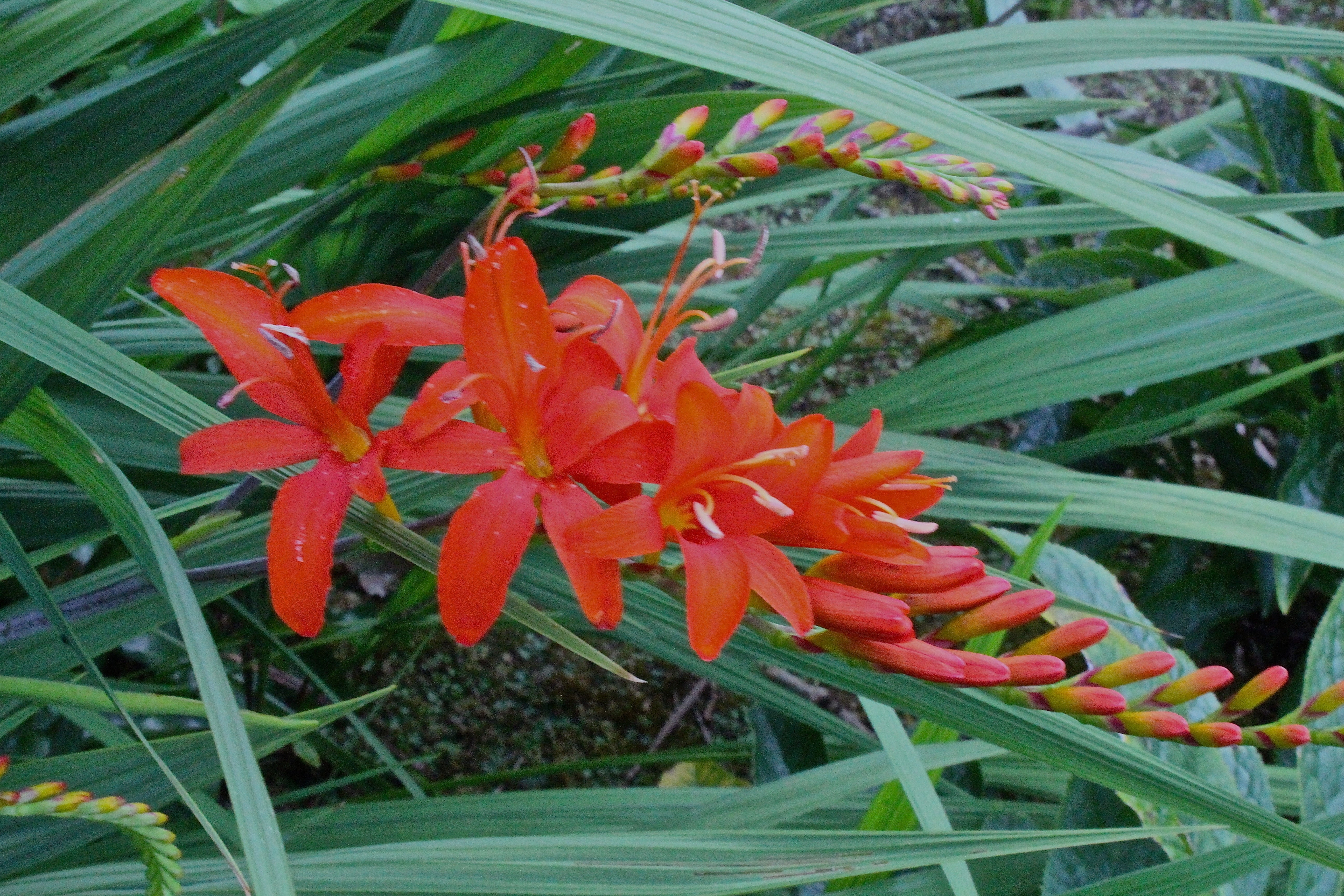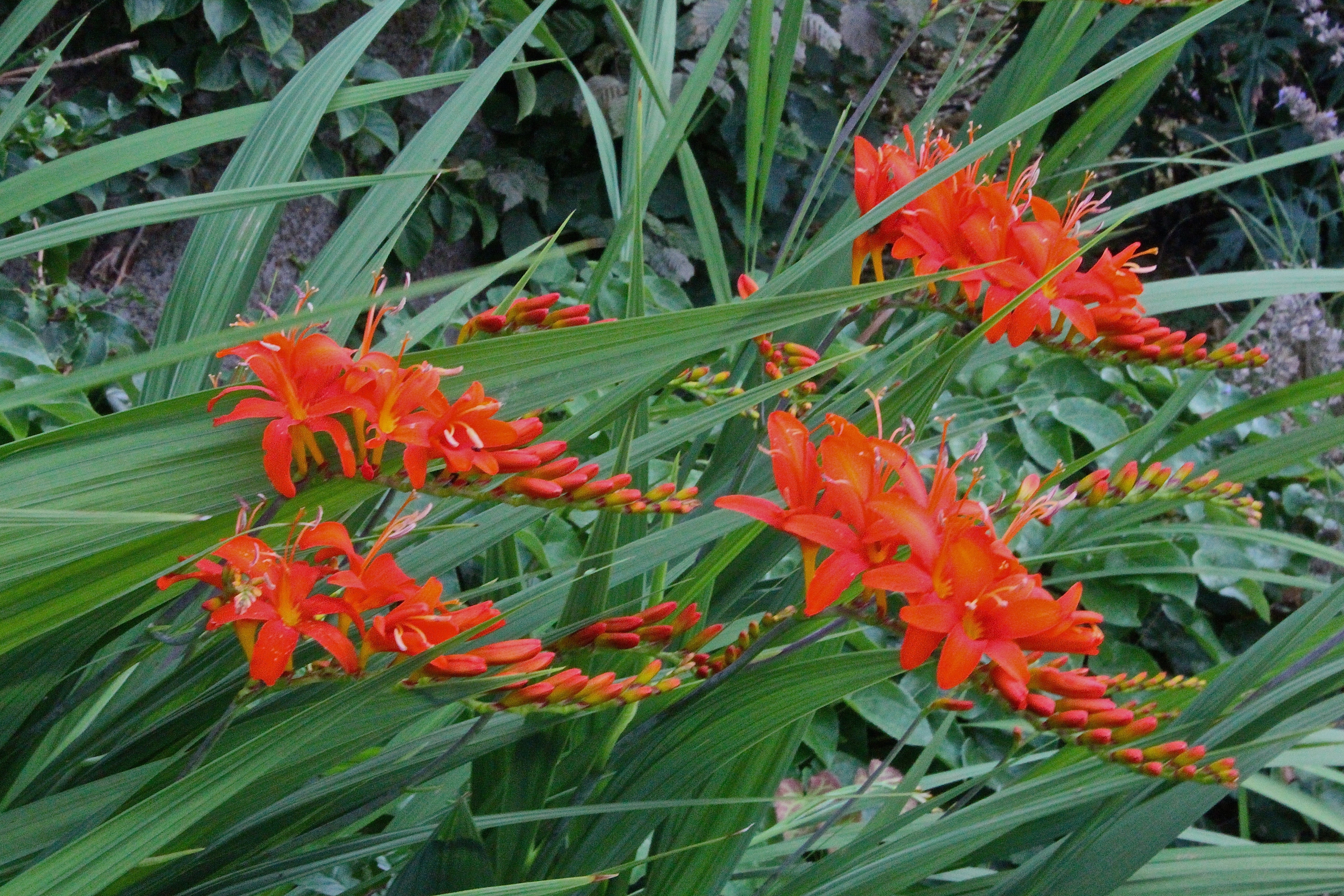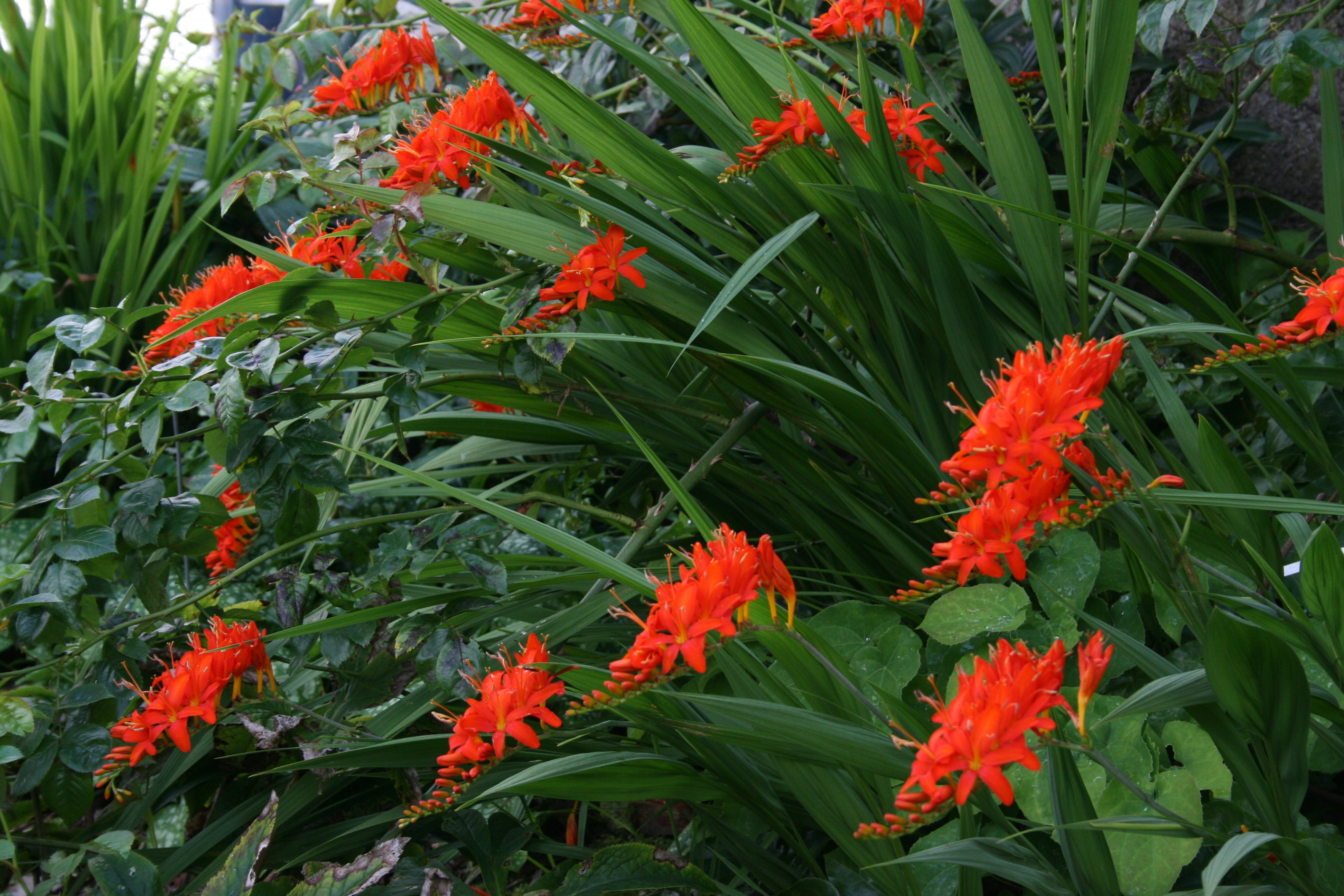 Crocosmia species were first hybridized in the 1870's at the Lemoine nursery in France, and over 400 cultivars have been introduced. However many of the fine old cultivars have sadly been lost to history. The cultivars we have at Ballyrobert vary a bit in habit - some, like the aptly named 'Lucifer', can very vigorous and can take over the garden (if that's what you want) others, like the aptly named Lady Hamilton, are well behaved. As for soil and situation, we find they grow anywhere that isn't too extreme - if you have a very devilish spot in your garden, stick 'Lucifer' in there (pun intended).