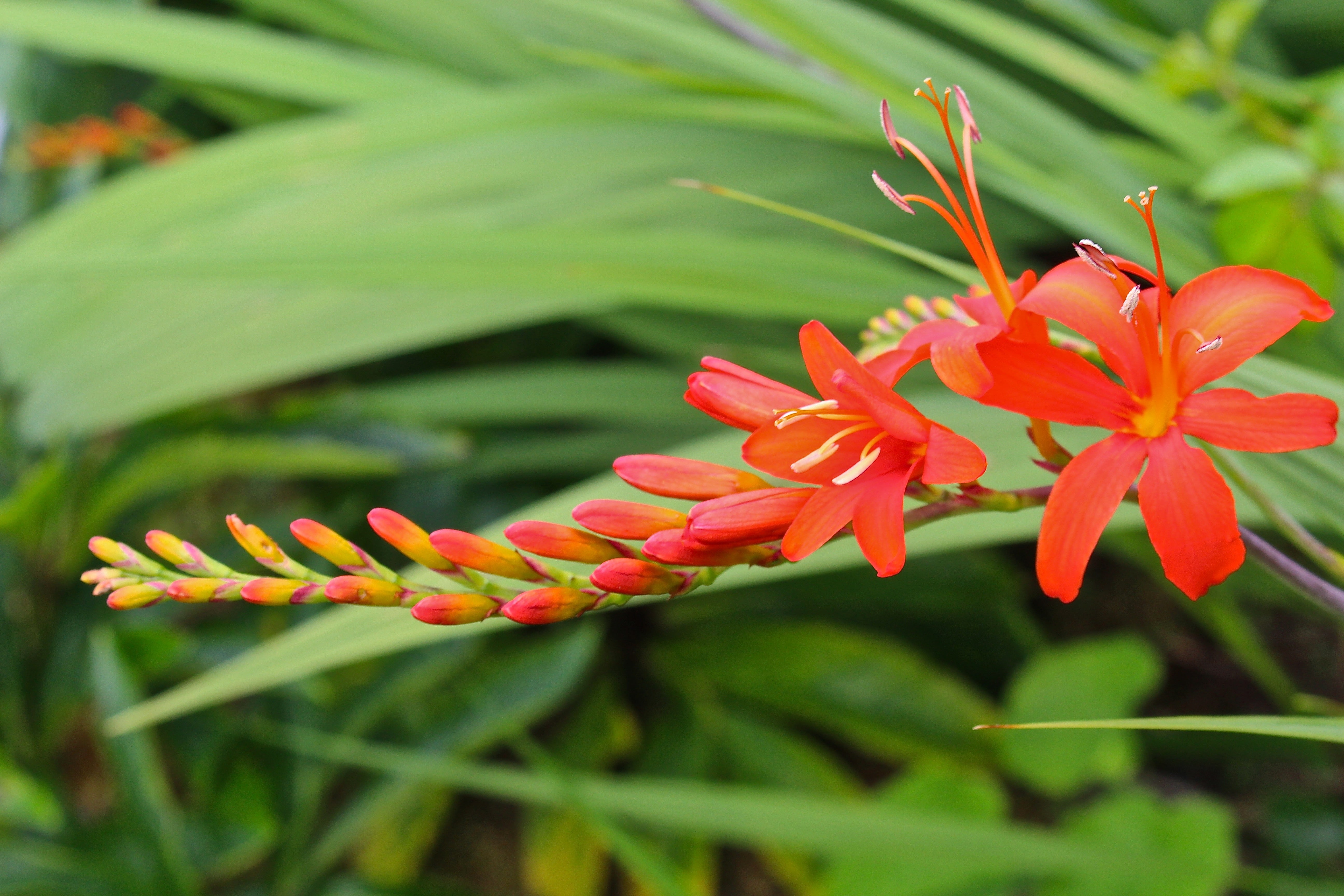 Crocosmia is a wonderful genus of 11 species of easy-to-grow, perennial, summer flowering bulbs from Southern Africa. These iris family members (Iridaceae) produce blazing flower stalks in summer from fast-multiplying underground corms (bulb-like structures).