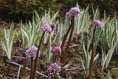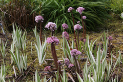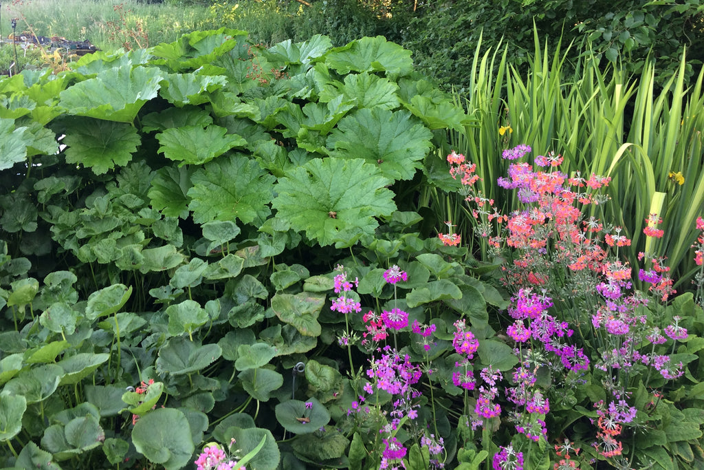 • Goes well with: Iris, Rodgersia, Caltha and Primula, like in the photos, but you also use it by ponds and woodland. Or try Astilbe or large ferns.
