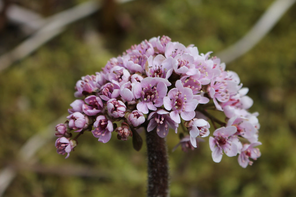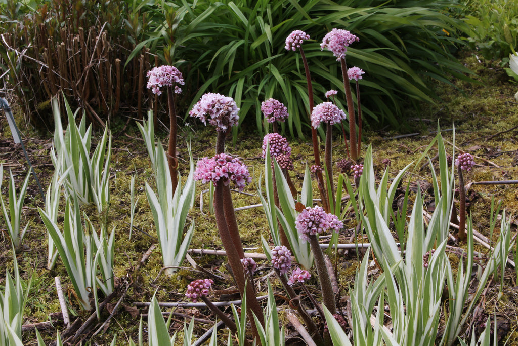 In late spring flower clusters emerge before any leaves appear. The flowers are on stems up to 2m long and slowly change from pink to off-white with age. It has been said the floral arrangement is vaguely reminiscent of Primula japonica, the Japanese Primrose. However, I think they look much more exotic – like something from outer space! I got ChatGPT to rustle up some images of a space Darmera- see below!