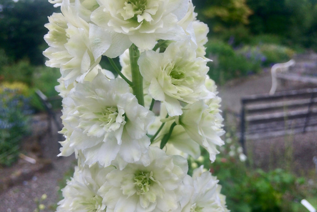 Delphinium 'Highlander Morning Sunrise' was raised in Glasgow by delphinium enthusiast Tony Coakley. So they can take harsher conditions than many varieties and will take winters down to -20C/-4F. Part of his 'Highlander' series which are unusual for their different colours, frilly flowers, hardiness, and stouter habit. This one is going great with us.