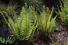 Dryopteris species come in a variety of shapes and sizes. Most gardeners assume that all ferns are green but Dryopteris species have variation in that regard - which ironically makes many people think they a dying or drying out! - once a week I have a customer telling me they need watered! The new growth on some species may be copper or cinnamon or even black.