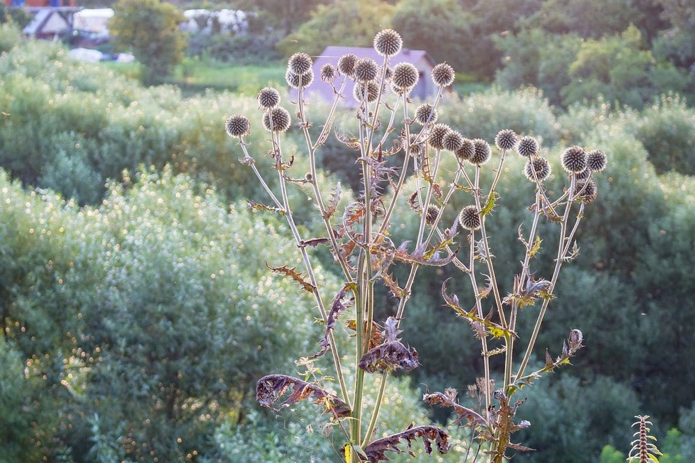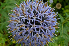 Echinops (EH-ki-nops)is a genus of about 120 species of flowering plants in the family Asteraceae, commonly known as globe thistles. Echinops can be annuals, biennials or perennials with simple or pinnately lobed, spiny leaves and spherical blue or whitish flower-heads. As always most of what we sell is perennial. If it isn’t, don’t worry, we mention it!