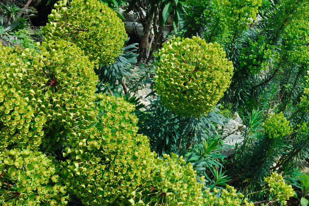 Depending on the cultivar, Euphorbia grow almost anywhere that is not too extreme; we have them everywhere in our garden at Ballyrobert. In the garden Euphorbia is prized for its unique flower heads, textural foliage, and wonderful garden structure. Many new perennial Euphorbia cultivars feature leaves that vary from green to yellow to blue-green to powder blue to purple and some are even variegated or splashed with colour. The flowers attract butterflies and all sorts of creepy crawlies; truely a garden essential!