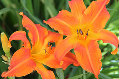 Hemerocallis (hem-er-o-kal-is) from the Greek hemeros (day) and kallos (beauty) is commonly known as the Daylily. Hemerocallis is now placed in family Xanthorrhoeaceae but formerly was part of Liliaceae (which includes true lilies) so technically it is not really a lily at all! Who cares? We still love them!
