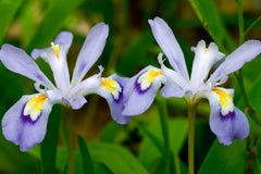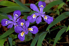 Iris cristata is a low-growing, rapidly spreading plant that features varying pale blue, lilac or lavender iris flowers with gold crests on the falls. Flowers are borne on very short stems, often appearing nearly stemless. Narrow, sword-shaped, yellowish-green to medium green leaves arise from a network of branching rhizomes. In its native North Amercia it typically occurs on rocky, wooded slopes, on bluffs, and along streams. When in flower, a well-developed bed can produce a spectacular drift of blue colour. Worth a try!