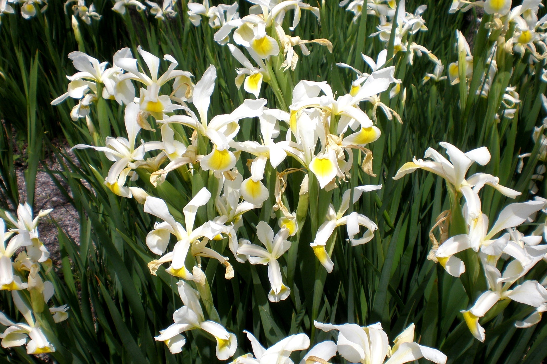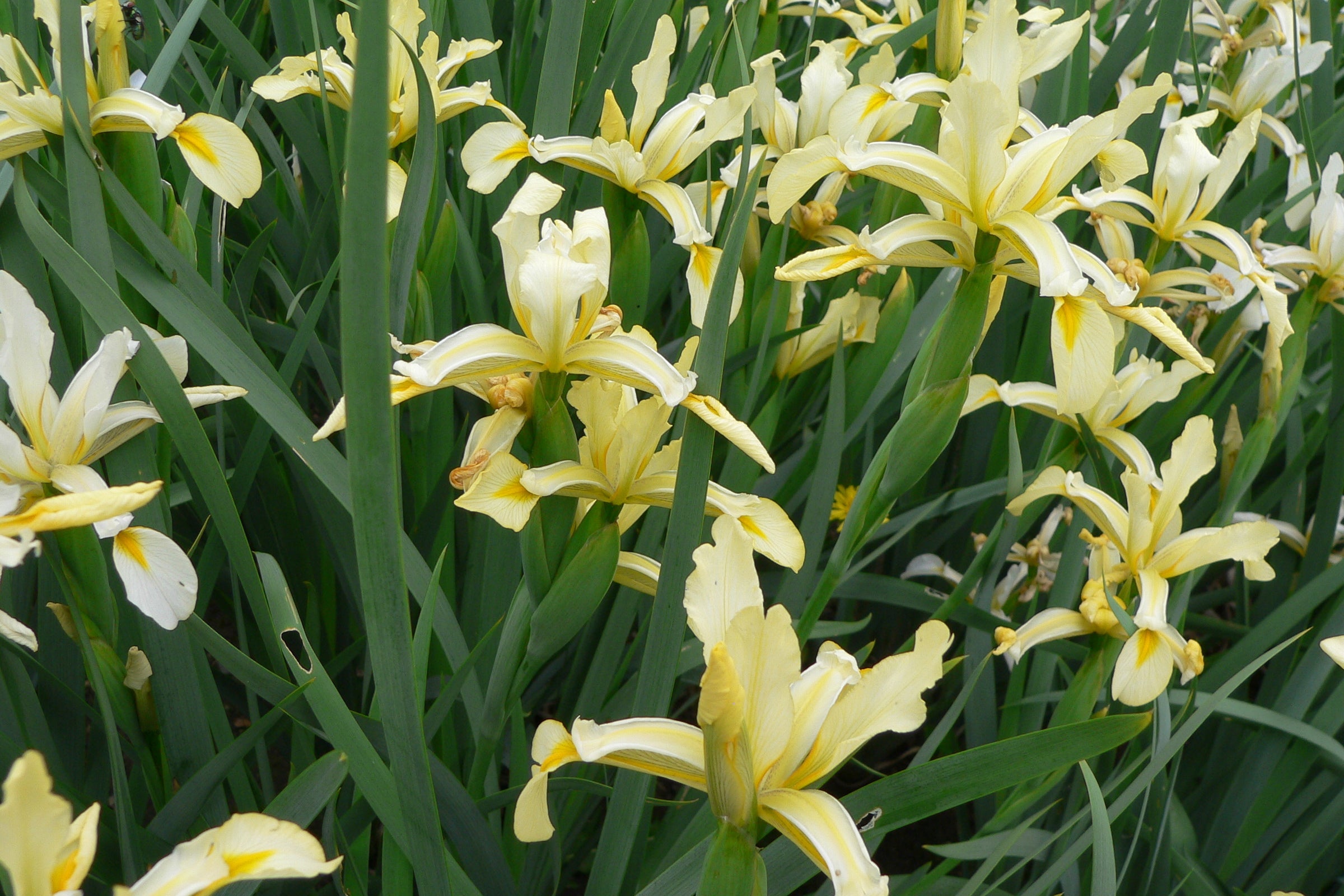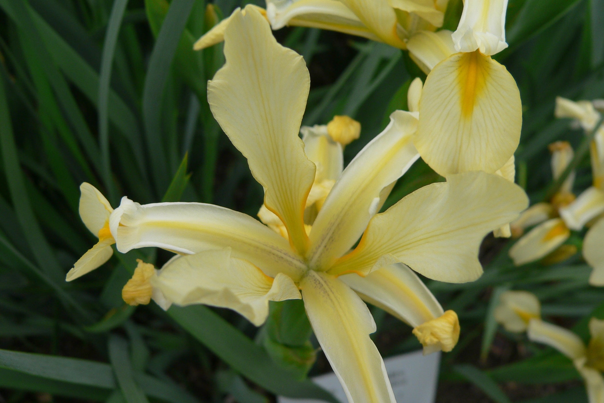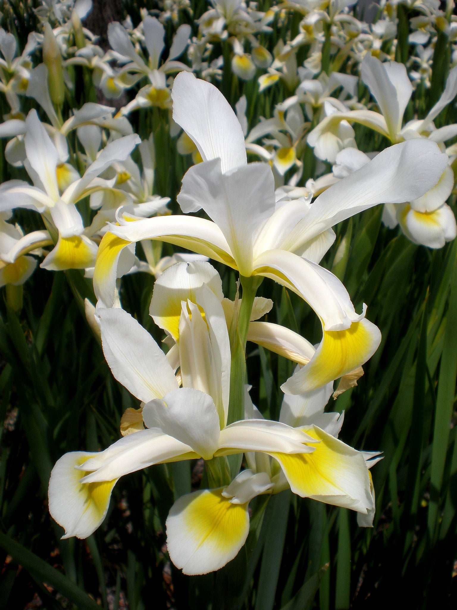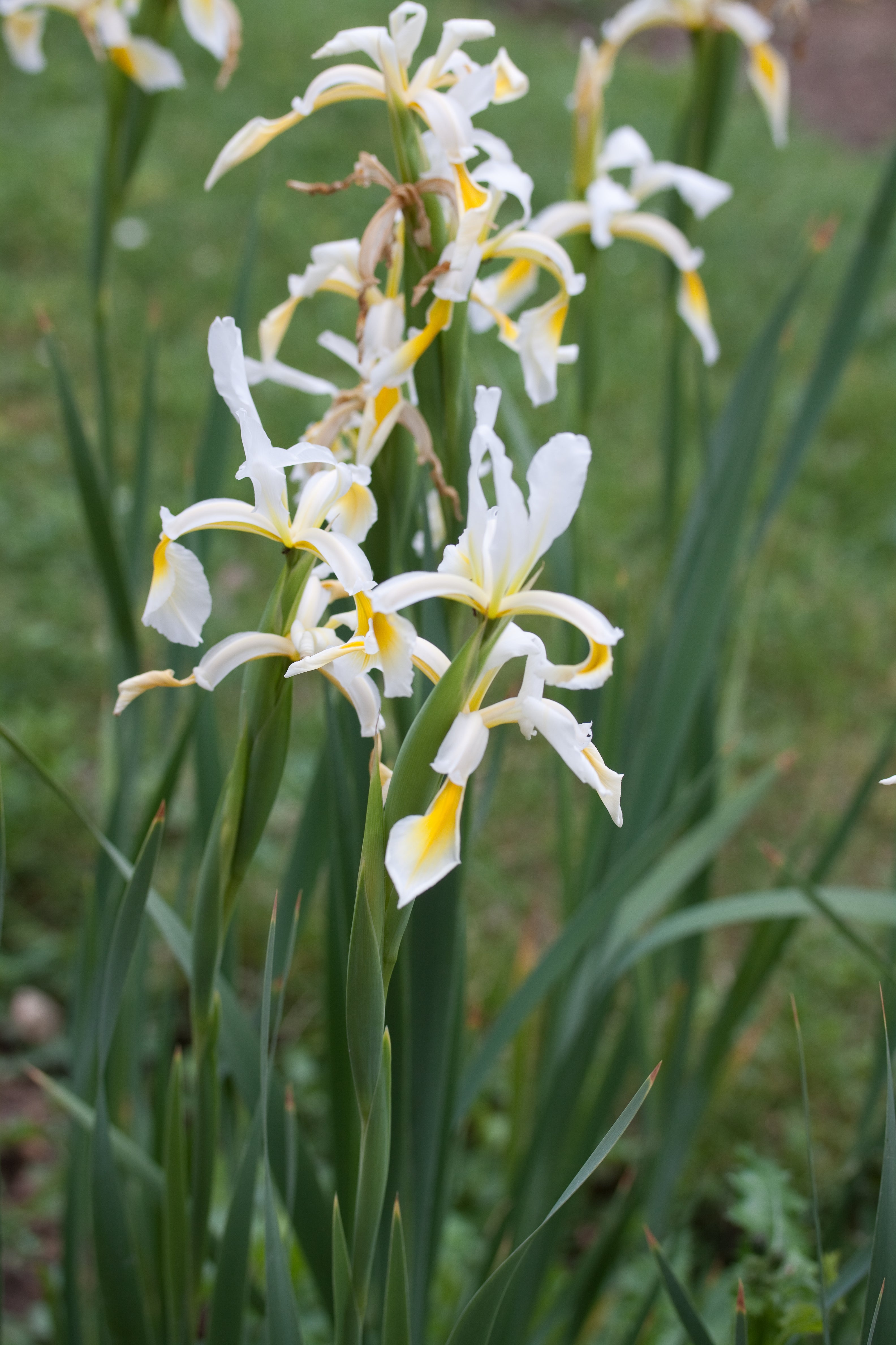 Iris orientalis is a species native to Turkey and Greece, with white flowers that have a yellow mark or blotch that varies in size. It was also known as Iris ochroleuca for a long time. It is commonly known as yellow banded iris in the U.S. and Turkish iris in the U.K. but also has some other less common names. First described by Philip Miller in The Gardeners Dictionaryin 1768. and by 1788, Curtis's Botanical Magazine described it using the name Iris ochroleuca. This was the start of the confusion between the 2 irises! Over 200 years later people are confused!