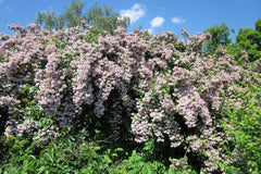 Kolkwitzia amabilis 'Pink Cloud' was raised at RHS Wisley in 1946 and, compared to the species, has deeper pink flowers. It is so floriferous the branches are often weighed down, gracefully, by the display.