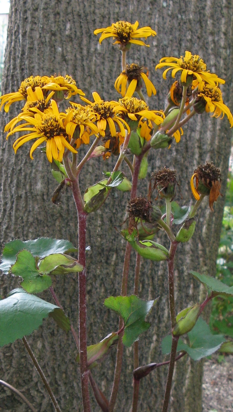 Ligularia (from the Latin for strap, referring to the shape of the ray floret) is an old world group in the daisy family that is used as both foliage and flowering plants in the garden. There is some confusion about Ligularia and Farfugium. These two genera used to be a single genus, Ligularia, but were split into the cold-loving Ligularia (roughly 140 species) and the warm-loving Farfugium (2 species).