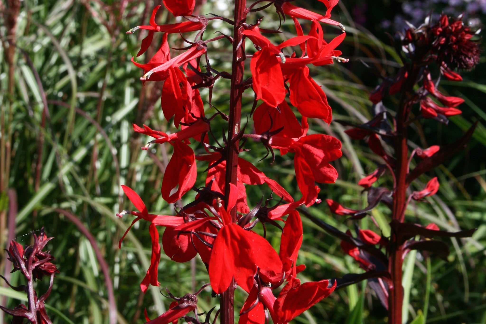 Lobelia prefers damp soils and in the wild is often seen growing in boggy places like swamps in sun or part shade. The flowering stalks of Lobelia arise from flat green winter rosettes and provide rich jewel tones of red, pink, blue and more. Lobelia flowers generally begin forming in midsummer on tall stalks and may last into autumn. It is a tough, low maintenance plant which makes it perfect for wet gardens.