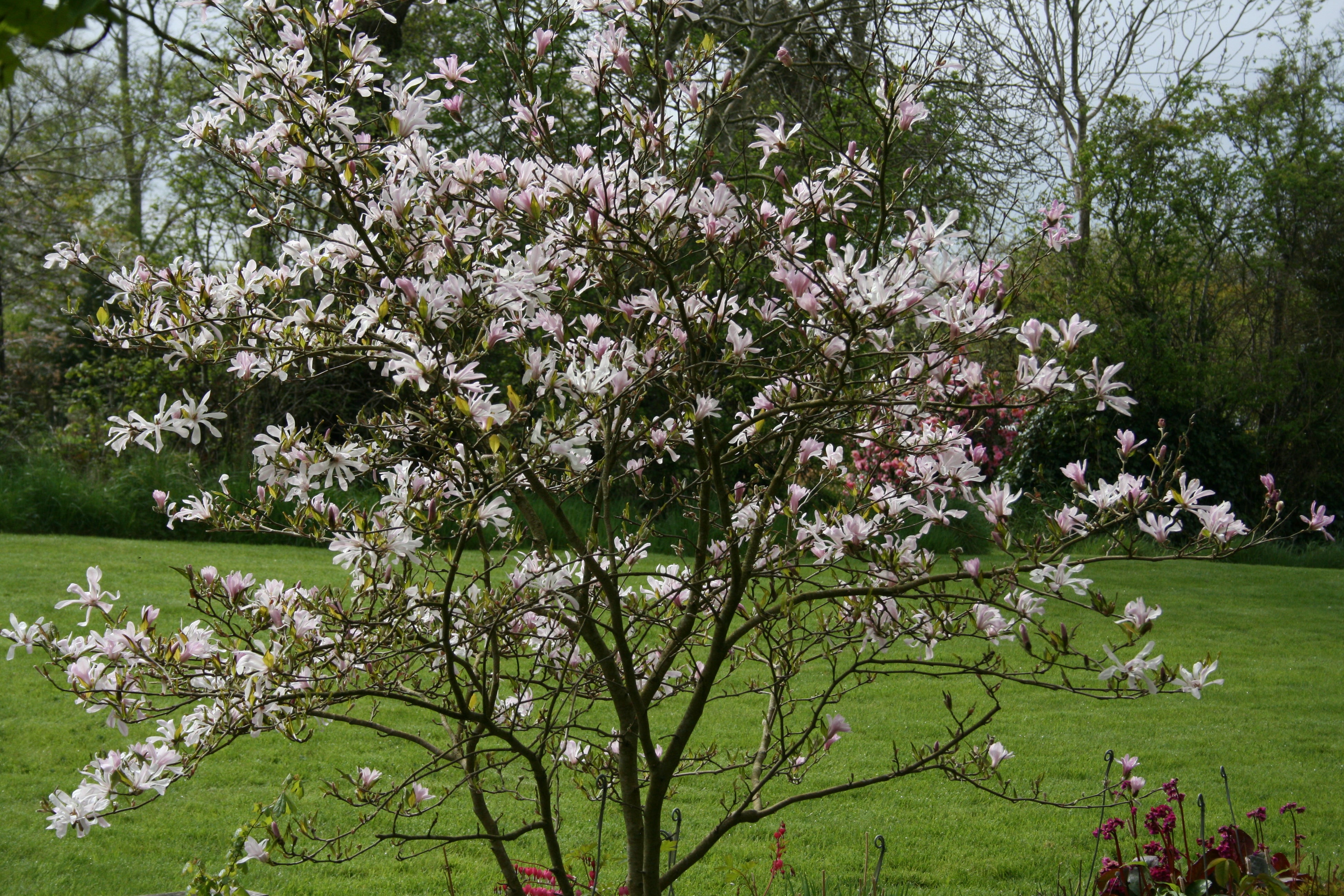 Magnolia stellata is native to Japan where it grows naturally by streamsides and in moist, boggy areas. First introduced to the United Kingdom in 1877 or 1878, most likely by Charles Maries, while he was collecting for Veitch Nurseries of Chelsea and Exeter. It is a small deciduous tree that typically grows with a spreading, rounded crown. It is also often grown as a large oval to rounded shrub.