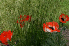 Wielded by man since prehistoric times, Poppies have long been associated with sleep and oblivion, and after the First World War, the Flower of Forgetfulness ironically evolved into a symbol for remembrance. Generally distinguished by nodding buds, solitary fleeting flowers gracing long stems, and decorative seed heads, these plants appreciate a somewhat dry position. However the cultivars we have here will also do well in wet clay - we know this because we grown them in our own wet-clay garden! In fact we have grown some cultivars under trees (you won;t read about that). So in general - any soil that isn't a pond and sun to part-shade.