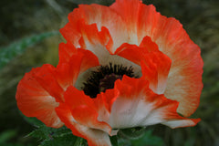 Papaver orientale 'Picotée' does what it says on the tin: Picotee in general means a variety of flower whose edge is a different colour than the flower's base colour. The word originates from the French picoté, meaning 'marked with points'. In this case we have orange-to-red edges with white-to cream centres. It is a bit taller than other poppies. We grow ours next to Deschampsia cespitosa 'Goldschleier' - see photos. An acquired taste - but I love it.