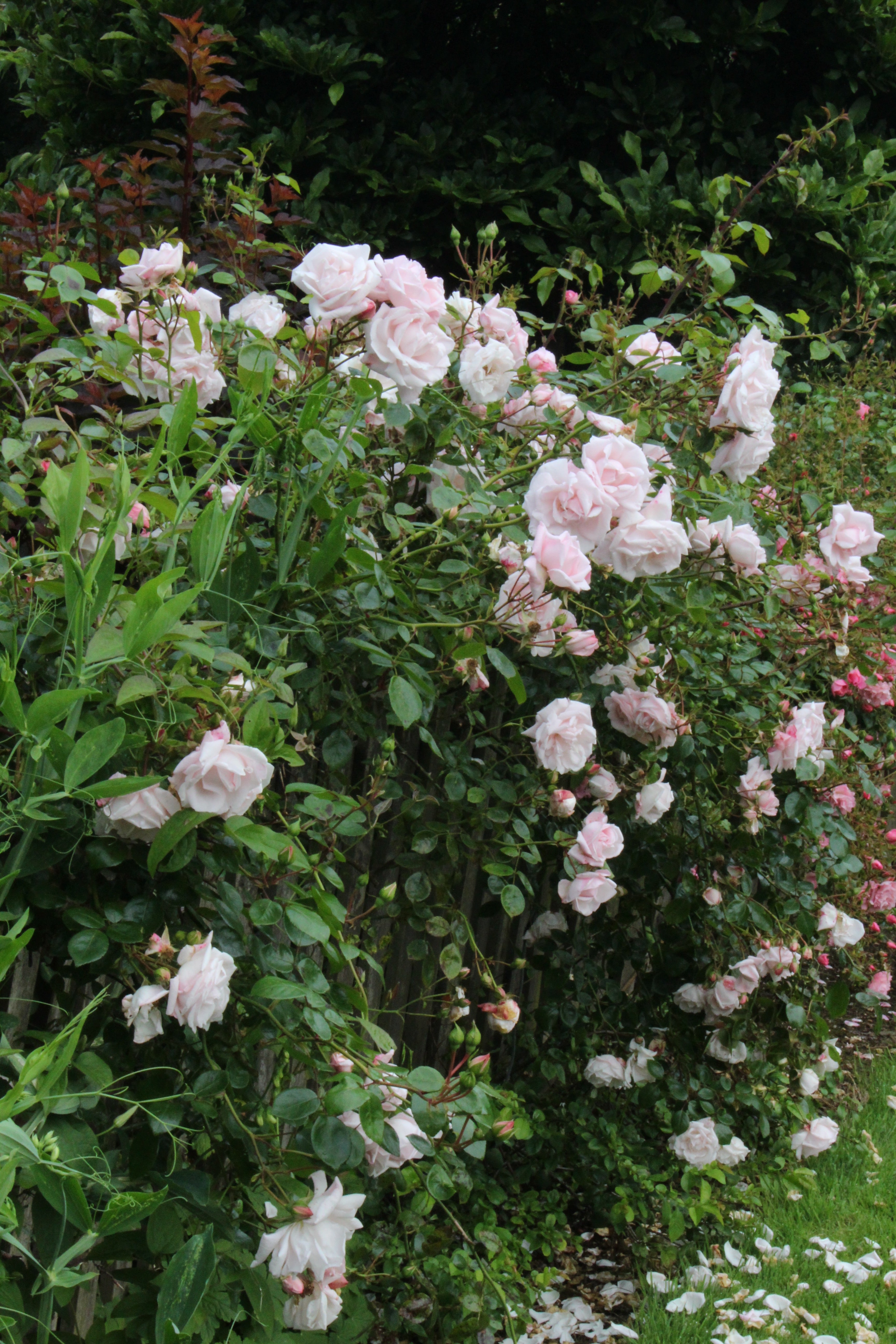 On the fence in some of these photos it is beside Rosa 'Sommermorgen'.