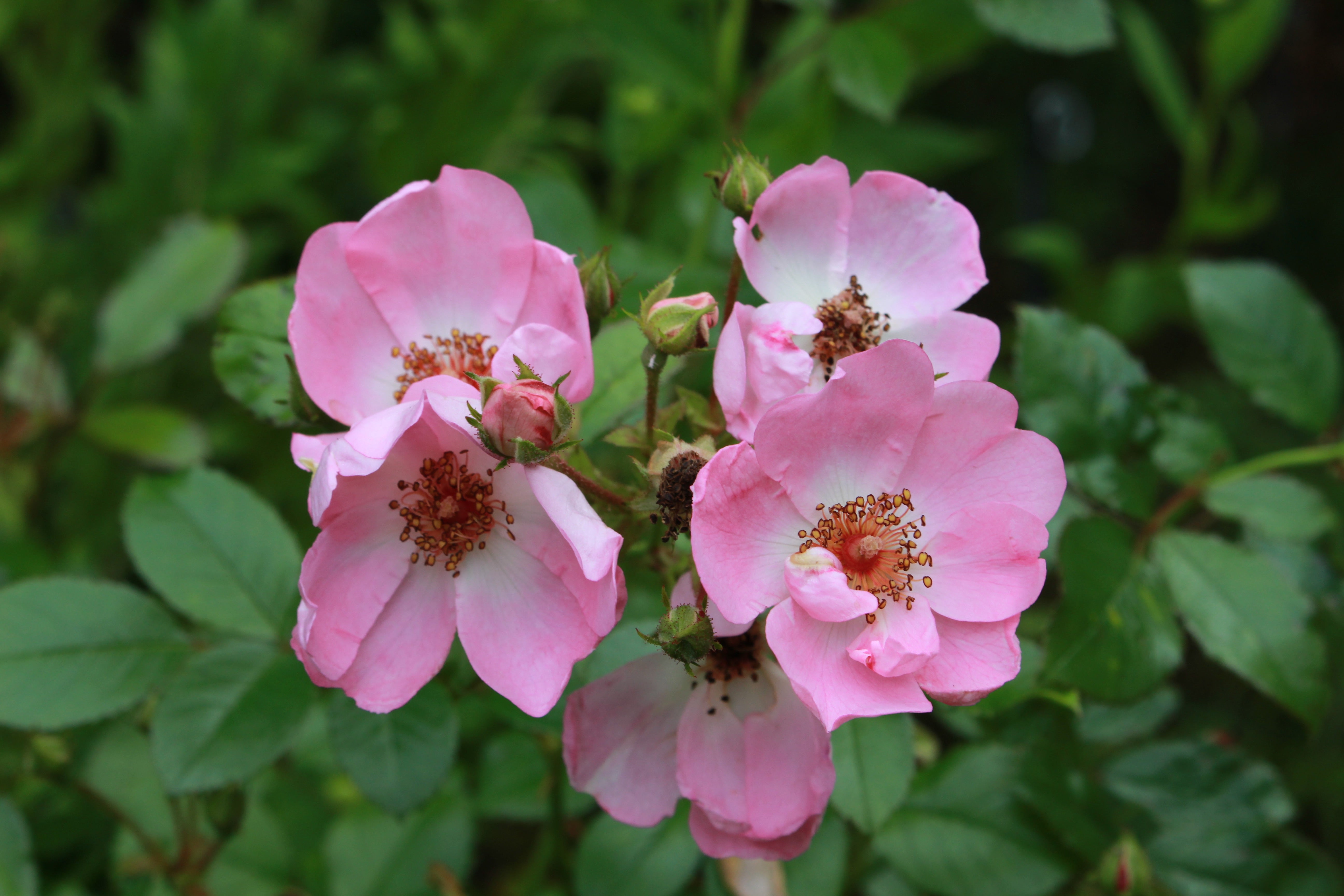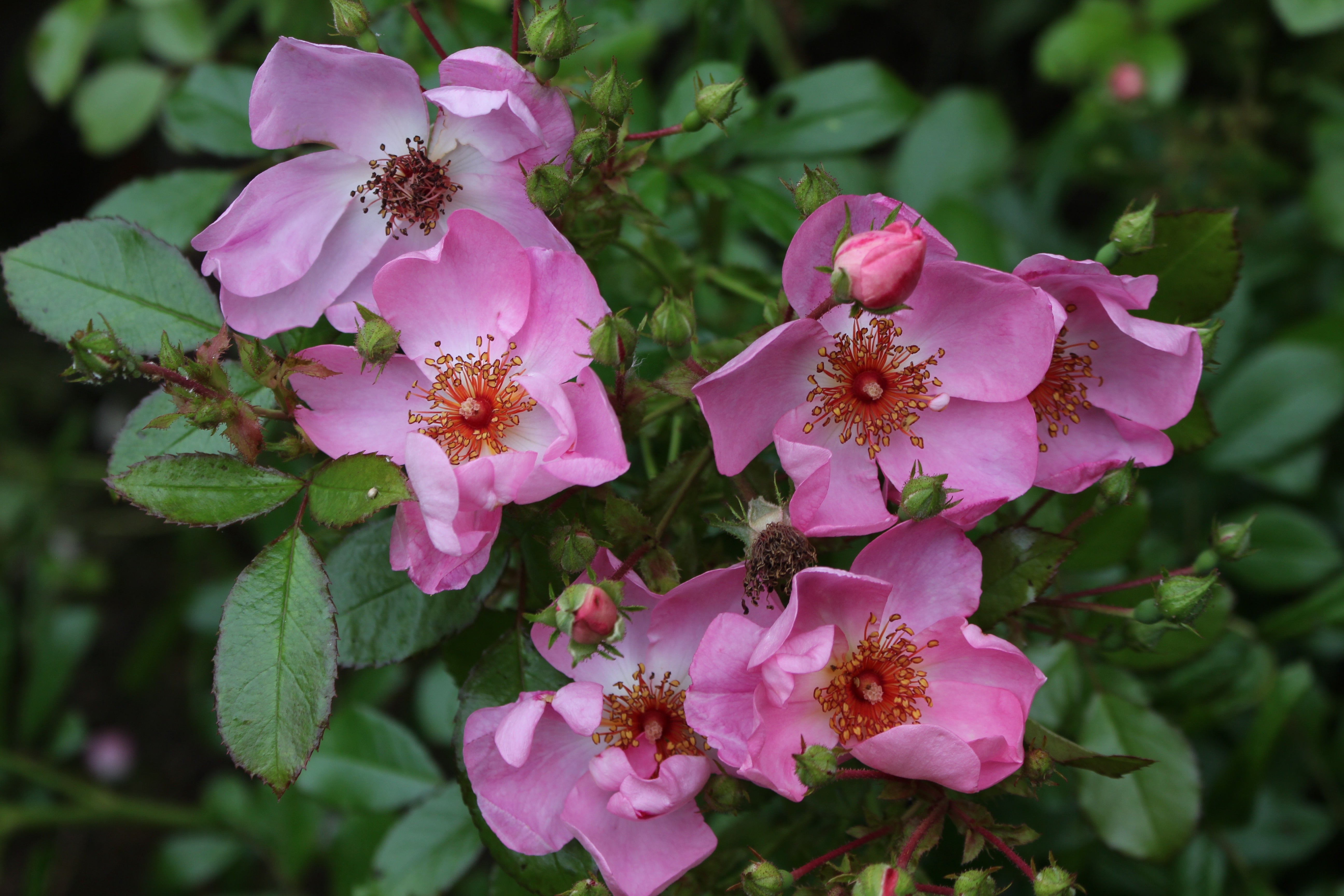 Rosa Sweet Haze = 'Tan97274' (F) is a compact shrub with dark green, glossy foliage and fragrant, cupped flowers. The clusters of single, pink flowers fade to white at their centres, contrasting with the golden-yellow stamens. Bred by Hans Jürgen Evers (Germany, 1997) it has the Rose of the Year 2008 award from the British Association of Rose Breeders, the 2004 ADR-Rose award from Allgemeine Deutsche Rosenneuheitenprüfung, the Certificate of Merit from the 2007 City of Glasgow International Rose Trials, and, of course, the Royal Horticultural Society Award of Garden Merit. Why not award it with a place in your garden? We have!