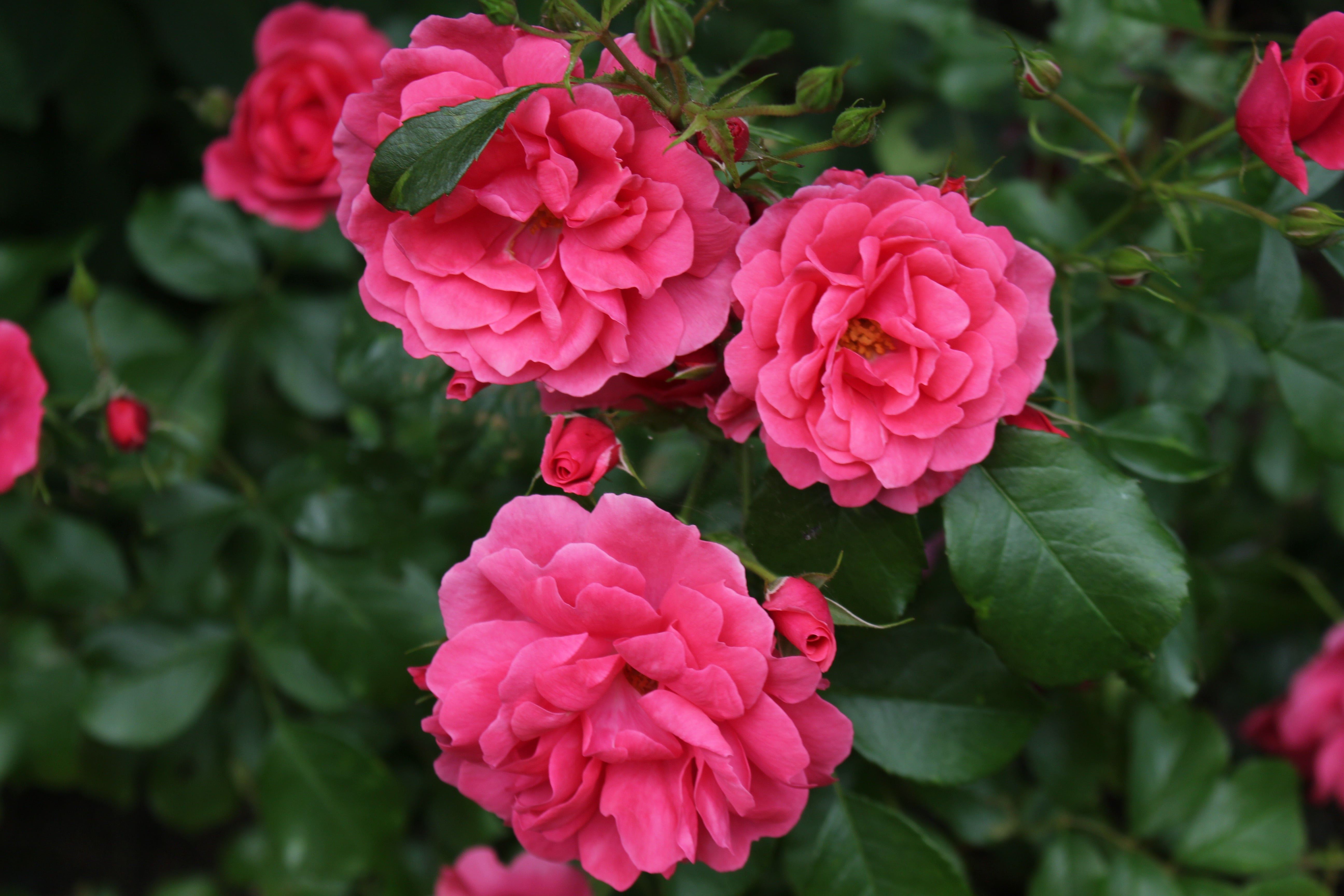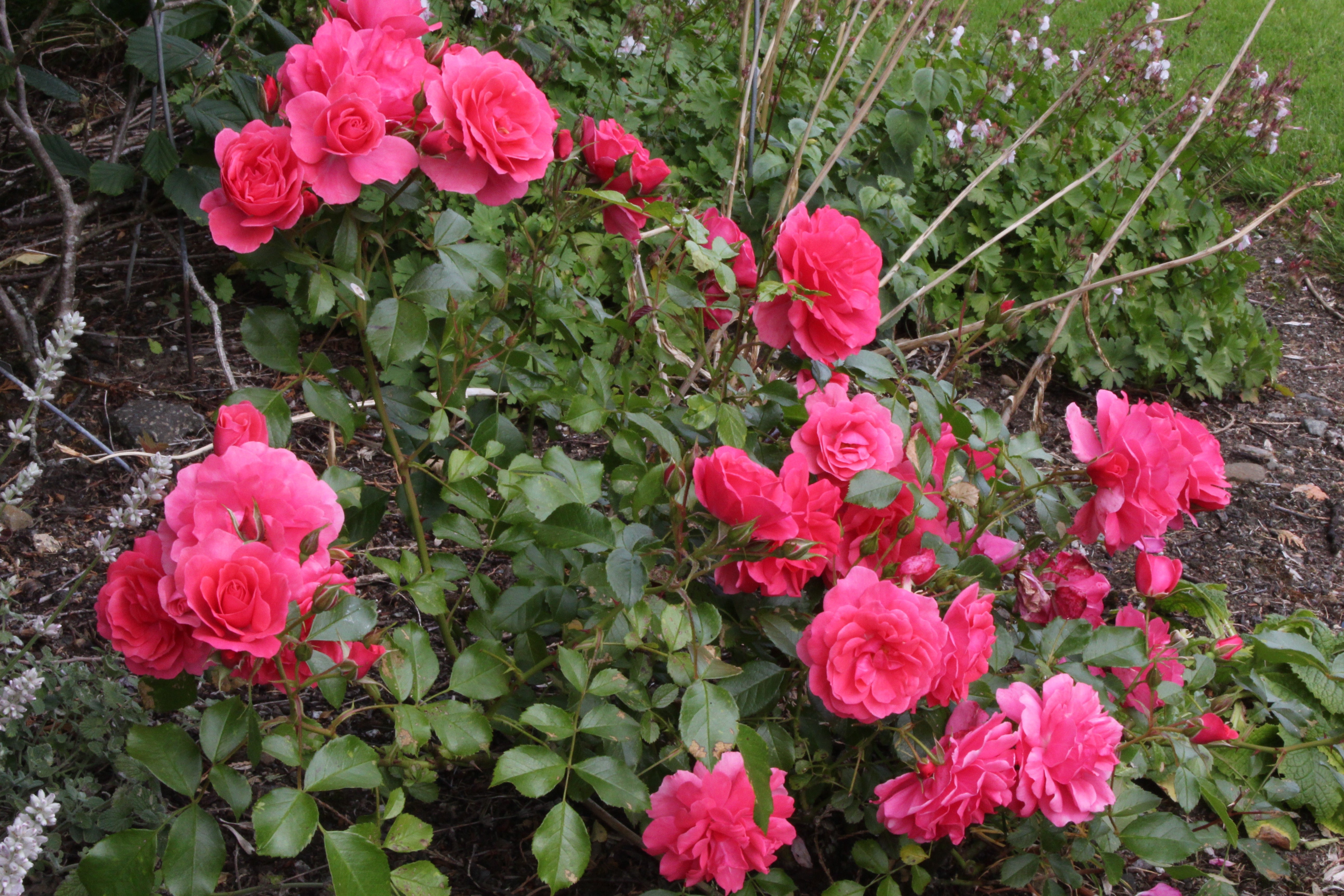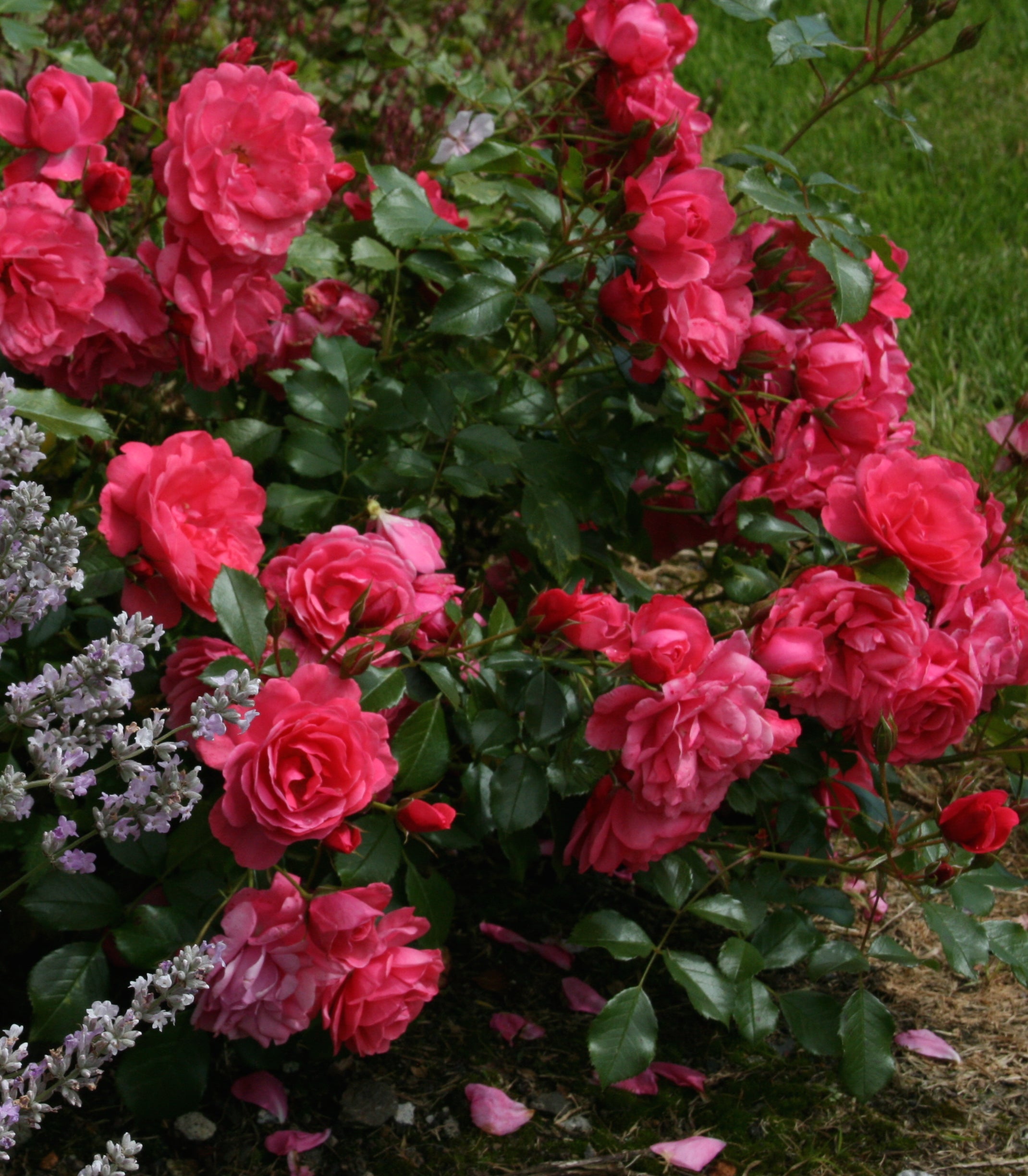 Rosa WILTSHIRE 'Kormuse' (S/gc) is a 1993 German introduction from W. Kordes. It has a succession of small, pinkish-red flowers and glossy mid-green foliage. The low-growing rose is up to 2 feet high. The Royal Horticultural Society has given 'Wiltshire' its Award of Garden Merit for all-round excellence in the garden.