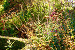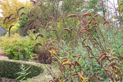 A profusion of dense and oblong, catkin-like blooms sway above decorative pinnate foliage, generating interest for months - the seed heads look great for months after they die and dry out. Happiest in a sunny to part-shade spot where the soil stays moist, put them where the catch the morning or evening sun for best effect
