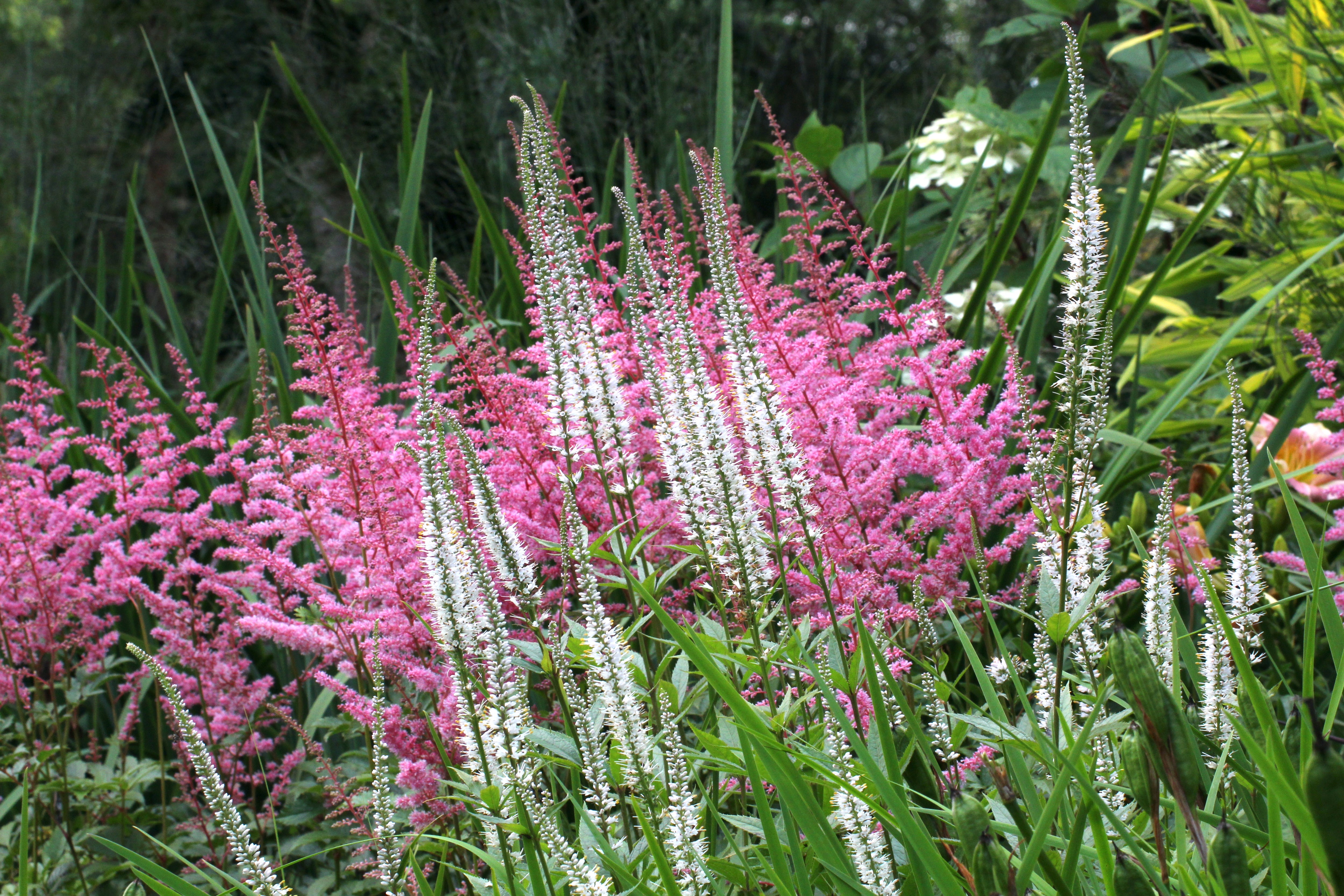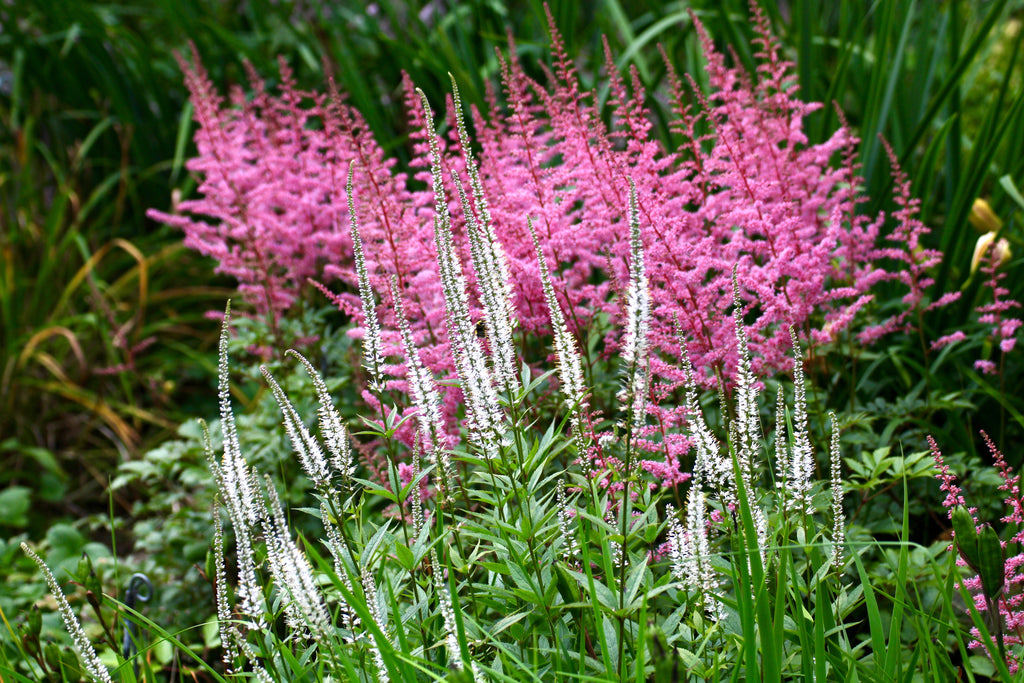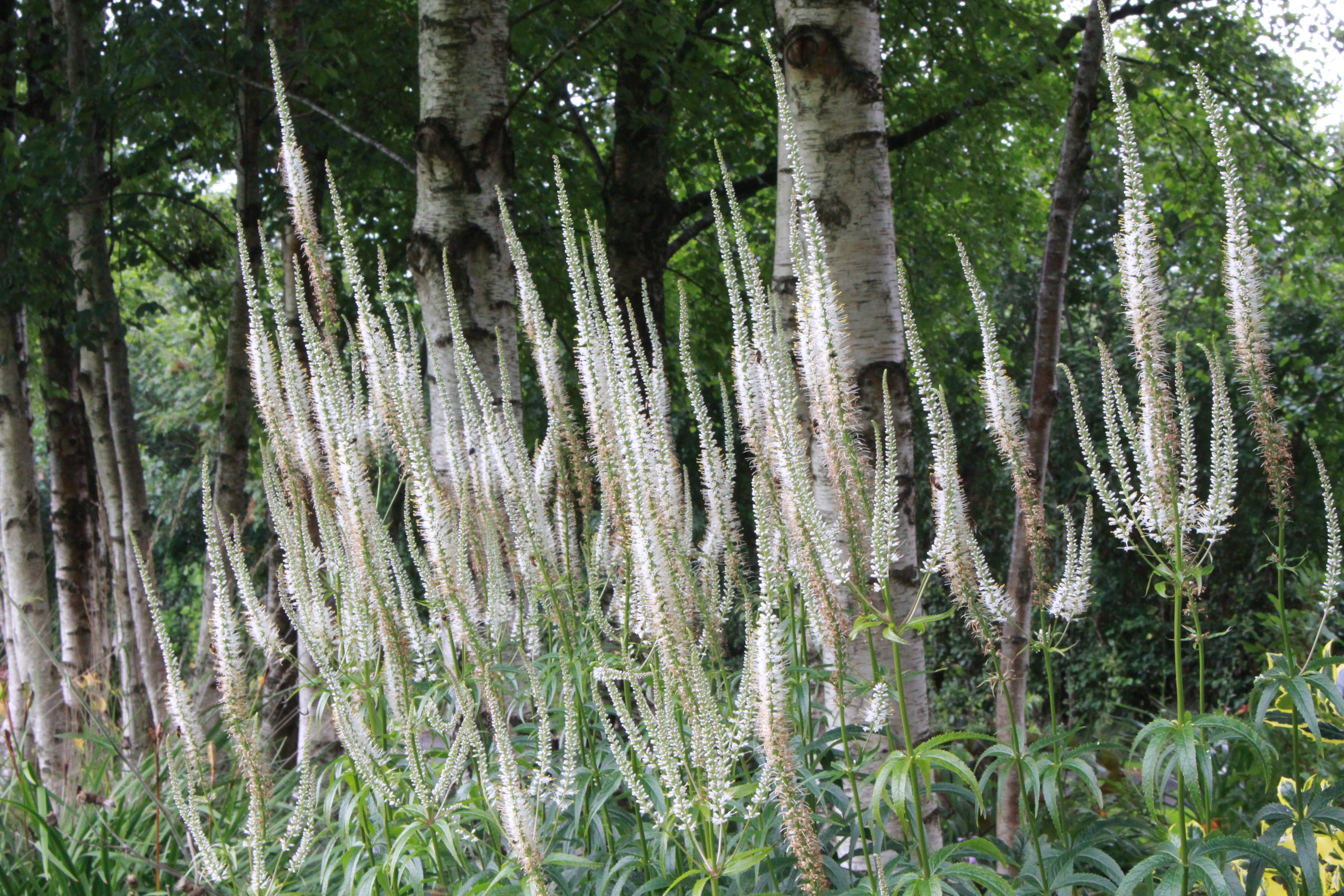 Veronicastrum virginicum 'Album' is a classy plant. Graceful white spires from dark bronze stems.